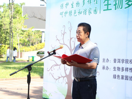 5月21日,普洱学院开展“保护生物多样性 呵护绿色和谐家园”生物多样性日宣传活动启动仪式,普洱市生态环境局局长何卫、学校团委副书记李祖昆、生物多样性科普教育馆馆长章靖,以及300余名师生参加了本次活动。