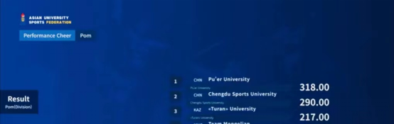 本次赛事由亚洲大学生体育联合会(AUSF)主办,原定在韩国举办,受新冠肺炎疫情影响,赛事改为线上形式举行。普洱学院啦啦操队代表中国大学生参与集体花球项目竞赛,以318分的比赛成绩,力压对手,登顶亚洲。