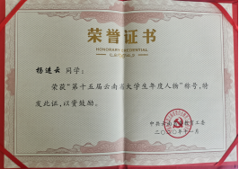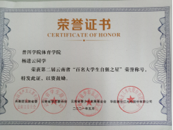 2019年,其所在宿舍荣获云南省级优秀宿舍荣誉称号,所在班级荣获云南省级先进班集体荣誉称号,个人荣获普洱学院优秀学生荣誉称号。