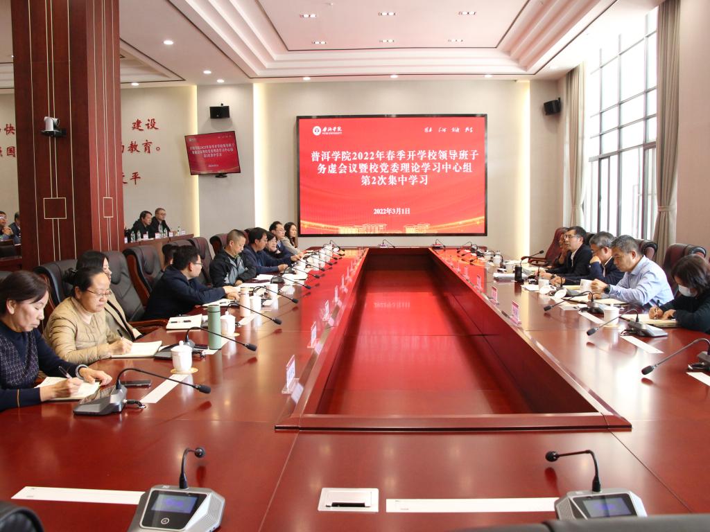 2022年3月1日,学校召开2022年春季开学校领导班子务虚会议暨校党委理论学习中心组第2次集中学习会,科学研究谋划并部署年度工作,推进全面从严治党,提升办学治校水平。党委副书记、院长马文会主持会议并讲话,党委委员、副院长白应华、李险峰,党委委员、纪委书记龚辉出席会议并作交流发言。
