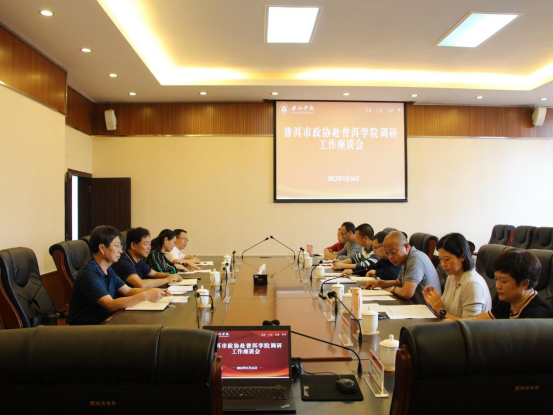 普洱市政协教科卫体委主任玉咏、文化文史和学习委主任张国华、文化文史和学习委副主任龙麟,普洱学院党政办公室、科学技术处、发展规划中心、铸牢中华民族共同体意识研究院、教师教育学院、咖啡学院负责人参加会议。