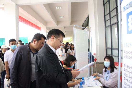 普洱学院党委书记胡国云参加推介会,向参会的15家用人单位推介我校毕业生,并与用人单位一一交谈,了解单位发展状况和用人需求。与参会学生亲切交流,鼓励他们积极求职,尽早就业。