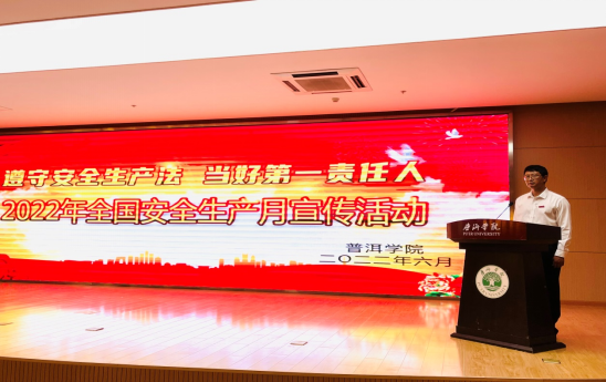 普洱学院保卫处处长王宏昆宣布启动第21个全国“安全生产月”系列活动。