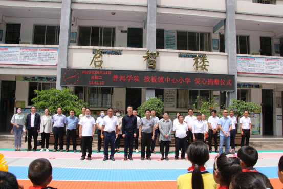 离开联盟村后,普洱学院领导一行调研按板镇中心小学,向学校捐赠500册图书以及“爱心助学 铸梦同行”公益拍卖、义卖所得善款5万元。