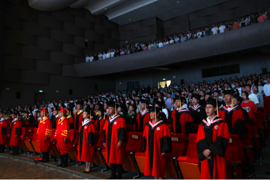 典礼前,《老师我想你》的歌声、激情四射的啦啦操表演和《一起说声毕业快乐》的视频将在场师生的情绪拉满。依依不舍的离愁萦绕心间。随着屏幕上的倒计时,毕业典礼正式拉开帷幕。