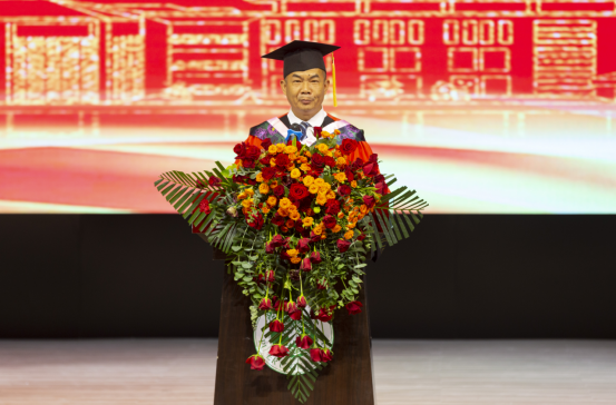 胡国云向即将开启人生新征程的2022届毕业生们送上热烈的祝贺和诚挚的祝福,并向毕业生提出三点希望:一是希望同学们坚定马克思主义的信仰,坚定中国特色社会主义的信念,坚定实现中华民族伟大复兴中国梦的信心,树立远大理想,在担当中历练,在尽责中成长;二是希望同学们坚持马克思主义的立场、观点和方法去应对各种挑战、抵御各种风险、克服各种阻力、化解各种矛盾、解决各种问题的方法和途径,勇立时代潮头,加强自律自省,恪守法纪底线,不负青春,苦练过硬本领,放飞青春梦想;三是希望同学们在奋斗中释放激情、追逐理想,在开拓中砥砺奋进、创新发展,在奉献中书写忠诚、实现价值,勇做走在时代前列的奋进者、开拓者、奉献者。胸怀忧国忧民之心、爱国爱民之情,奉献祖国、奉献人民,让青春焕发更加绚丽的光彩。