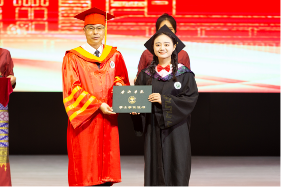 党委副书记、院长马文会为获得学士学位的毕业生代表授予学位并拨穗