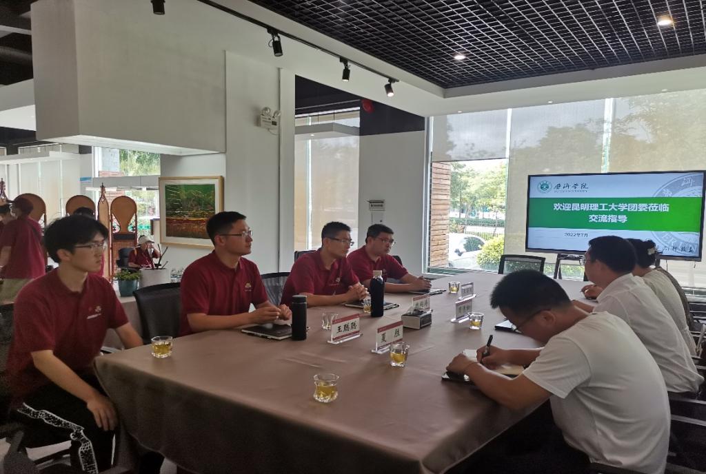 2022年7月7日,由昆明理工大学团委书记魏同涛、团委副书记王海波、王聪聪以及昆工学生骨干一行35人组成的实践团队到我校交流,我校团委书记周清松对兄弟学校的到来表示热烈欢迎并热情接待。