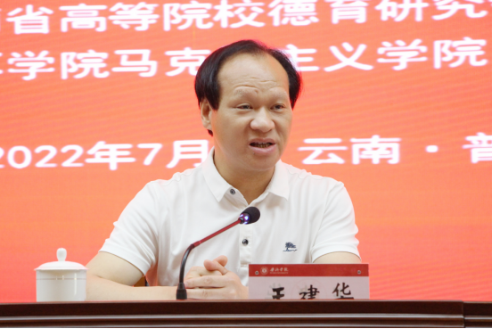 2022年7月21日,“新时代高校立德树人”研讨会暨云南省高等院校德育研究会2022年学术年会在我校召开。本届年会由云南省高等院校德育研究会、普洱学院主办,普洱学院马克思主义学院承办。普洱学院党委书记胡国云,党委副书记吴琳,云南省社科联党组成员、副主席王建华,云南省高校思想政治理论课教学指导委员会委员、云南省高校德育研究会常务副会长、云南农业大学马克思主义学院教授王飞,市社科联党组书记、主席张富春出席会议。来自全省各高校的代表190余人参会。