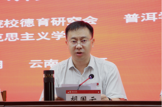 21日上午的开幕式上,胡国云向与会专家、学者表示欢迎并致辞。他介绍了普洱学院基本情况及德育教育工作情况,指出高等院校要坚持用习近平新时代中国特色社会主义思想铸魂育人,全面贯彻党的教育方针,落实立德树人根本任务,扎根边疆民族地区,传承红色基因,用心用情办好学校思政课,做好学校德育工作。他希望与会高校能传经送宝,助力普洱学院德育工作和马院建设;希望通过本次活动,进一步加强校与校之间的信息互通、合作交流,推动学校德育工作、思想政治教育工作领域的研究与发展,携手推动云南省德育教育工作更上一层楼。
