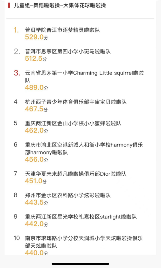 俱乐部队伍也在这次比赛中获得优异成绩。普洱学院啦啦操俱乐部是云南省第一家高校俱乐部,通过近几年的发展,普洱学院啦啦操俱乐部已可申请全国五星俱乐部。此次比赛普洱学院啦啦操俱乐部以一套具有傣族特色风格的花球套路获公开组小集体花球冠军,由普洱学院学生负责训练的小学俱乐部,以529分获儿童组集体花球冠军。普洱学院啦啦操团队已成为高校服务地方、助力当地青少年校园体育发展的重要力量。
