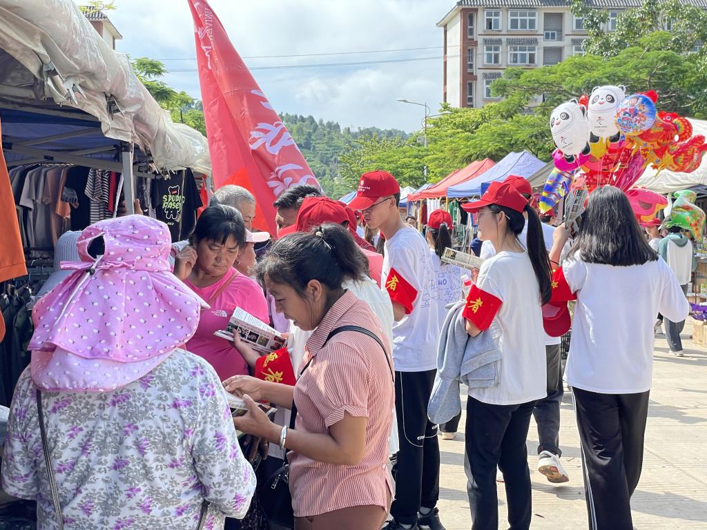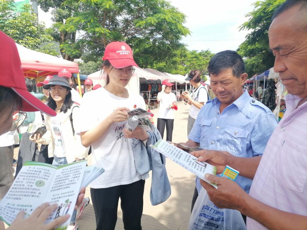 在思茅港镇集市,大家围绕“保护野生动植物——爱鸟护鸟”主题向当地村民宣传《公民生态环境行为规范》《生物多样性保护手册》,增强当地村民保护野生动植物的意识,通过调研深入了解当地环保政策和野生动植物相关知识。