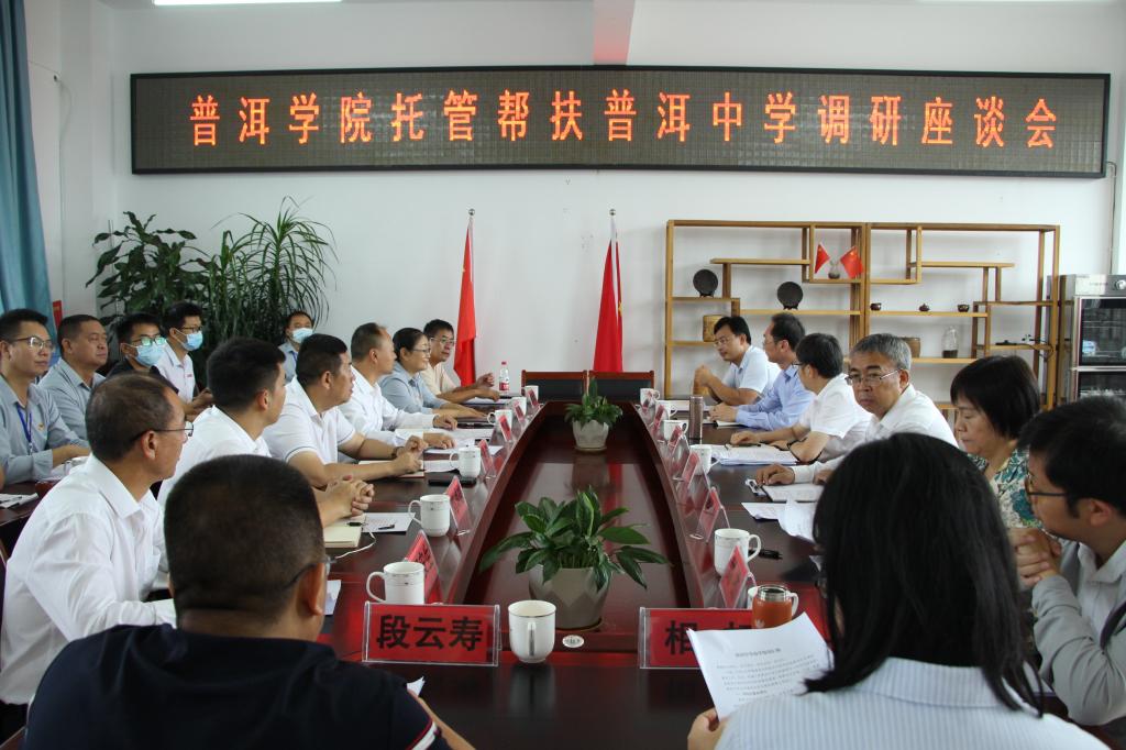 9月22日上午,普洱学院党委副书记、院长马文会带队到普洱中学调研座谈县中托管帮扶事宜,副院长白应华及相关部门负责人随行调研。宁洱哈尼族彝族自治县人民政府副县长杨金波及县教体局、县研训中心、普洱中学相关领导参加调研座谈会。