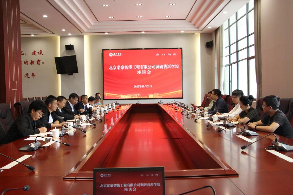10月31日上午,北京泰豪智能工程有限公司常务副总裁史进一行到普洱学院调研座谈。党委书记胡国云,党委委员、副院长李祖军出席座谈会。