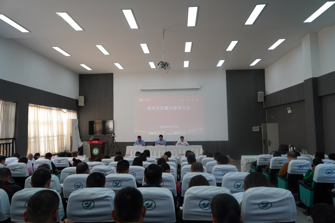 11月1日下午,普洱学院召开警示教育大会暨开展党委书记上廉政党课活动,强调坚持底线思维,筑牢思想防线,严格遵守廉洁自律各项规定,营造风清气正良好政治生态。