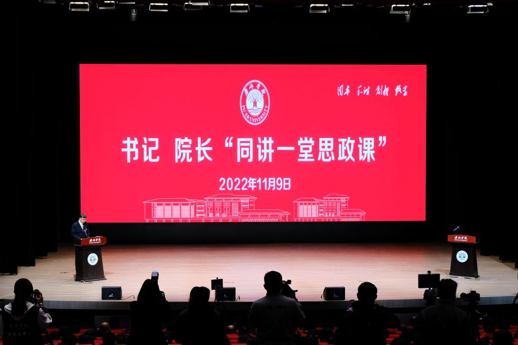 11月9日上午九点,普洱学院在致远楼演播厅举行书记院长“同讲一堂思政课”暨2022级新生开学典礼。中国工程院院士、普洱学院名誉院长刘仲华教授,普洱学院党委书记胡国云,党委副书记、院长马文会以“学习宣传贯彻党的二十大精神”为主题,为全体师生“同讲一堂思政课”。
