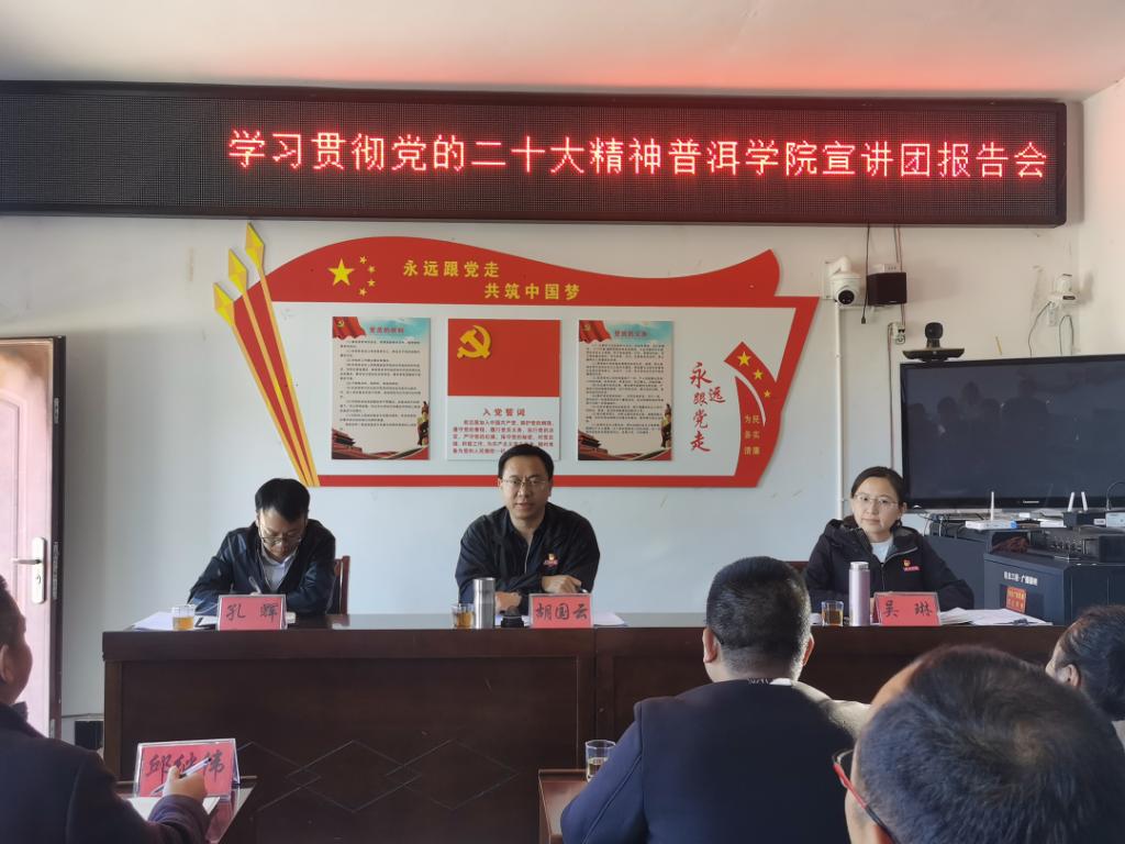 随后,胡国云在联盟村会议室作了党的二十大精神专题宣讲。他指出,云南红色历史悠久,新中国成立以来,改革开放以来,尤其是党的十八大以来,老百姓的生活发生了翻天覆地的变化,这些得益于党的坚强领导。我们必须坚持马克思主义中国化的理论成果,弘扬伟大建党精神,以习近平新时代中国特色社会主义思想为引领,紧密团结在以习近平同志为核心的党中央周围,在省委“3815”战略发展目标谋划下,开拓进取、勇毅前行。开创新时代中国特色社会主义现代化建设新局面。