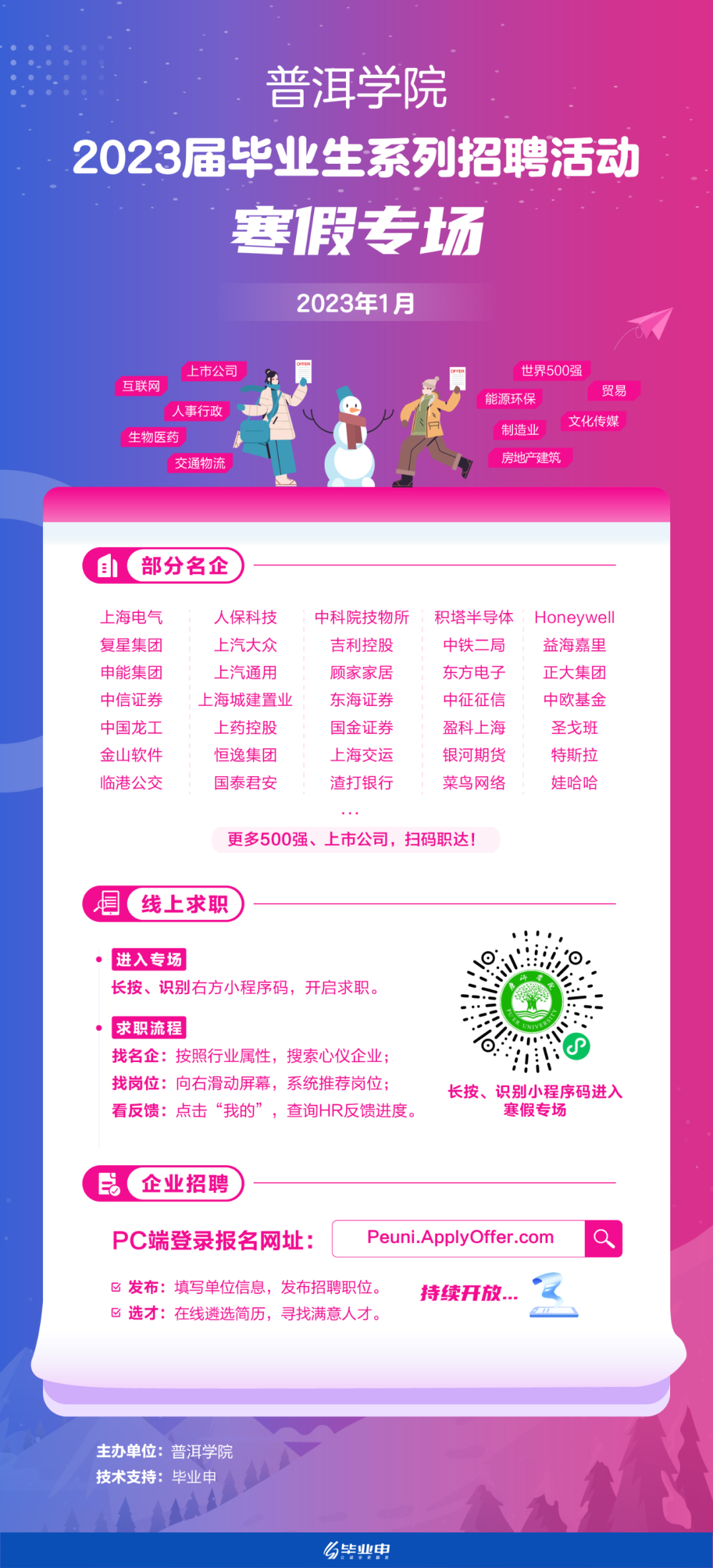 为贯彻落实教育部关于2023届毕业生就业工作的总体部署,深入开展就业育人工作,持续推进毕业生与用人单位精准供需对接,为我校毕业生高质量就业拓宽渠道,现决定举办专场招聘活动。