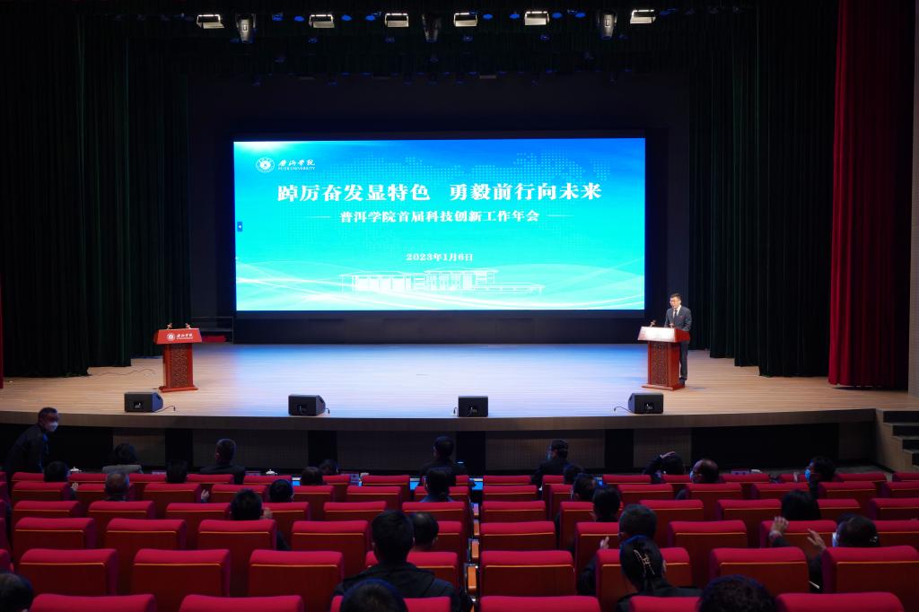 胡国云在致辞中表示,近年来,普洱学院坚持以地方经济社会发展需求为导向,汇聚学校资源,凝练科研方向,强化科研特色,实现了国家自然科学基金、社会科学基金新的突破,获批老挝研究中心国家级平台、云南咖啡品质优化及价值提升公共科技服务平台等科研平台5个、高端智库平台3个,省级创新团队2个,地厅级科研团队16个;承担国家级和省部级项目共计70余项。新征程上,普洱学院将不断提升以普院智慧和科研创新支撑国家重大战略和地方经济社会发展的能力,践行科技自立自强的使命担当,为推动学校科技工作高质量发展、建设特色鲜明的省内一流高水平应用型大学贡献力量。