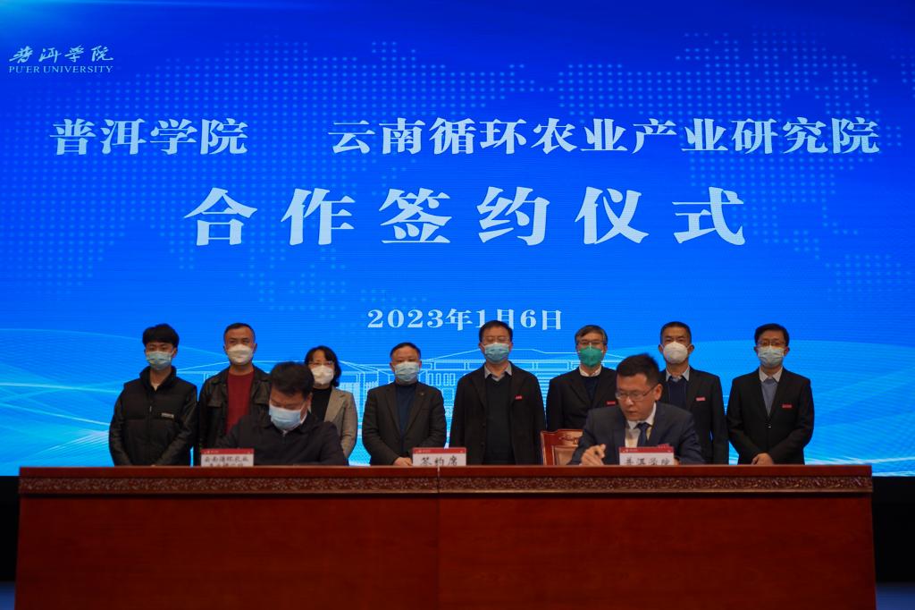 会上,举行了2021年度普洱学院科研成果创新奖颁奖仪式,普洱学院与云南循环农业产业研究院签约仪式。