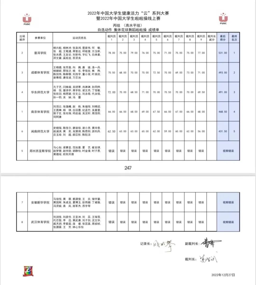 由中国大学生体育协会主办、中国大学生体育协会健美操与艺术体操分会执行的2022年中国大学生健康活力“云”系列大赛于2022年12月底举行。