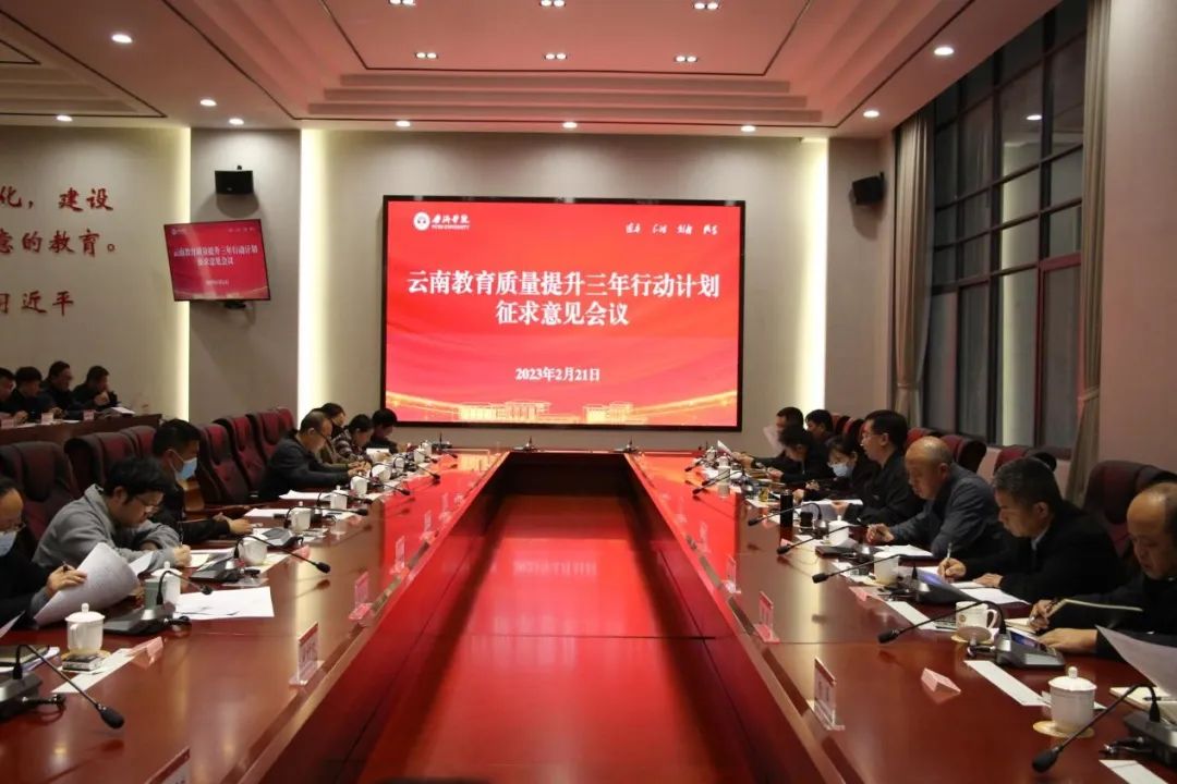 会议汇报了学校关于云南教育质量提升三年行动计划第一次征求意见的反馈情况以及普洱学院2023年工作要点。各负责人依次作了交流发言。