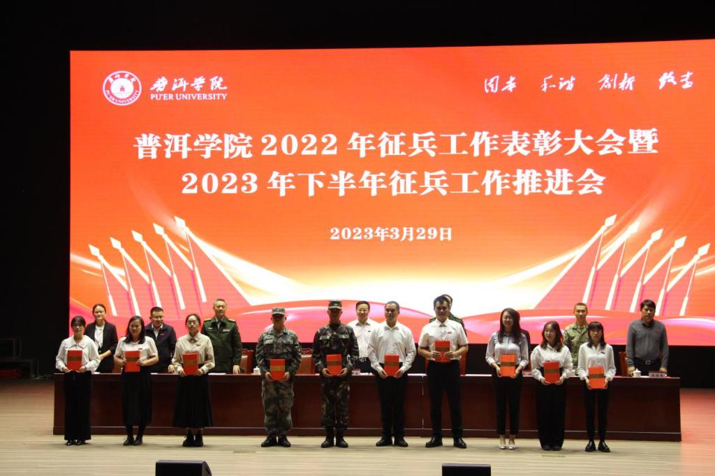 3月29日下午,学校举行2022年度征兵工作表彰大会暨2023年度下半年征兵工作推进会。普洱学院党委书记胡国云出席并讲话,普洱军分区副司令员、市征兵办公室主任应伟贤,学校党政班子领导成员出席,党委副书记李险峰主持会议。
