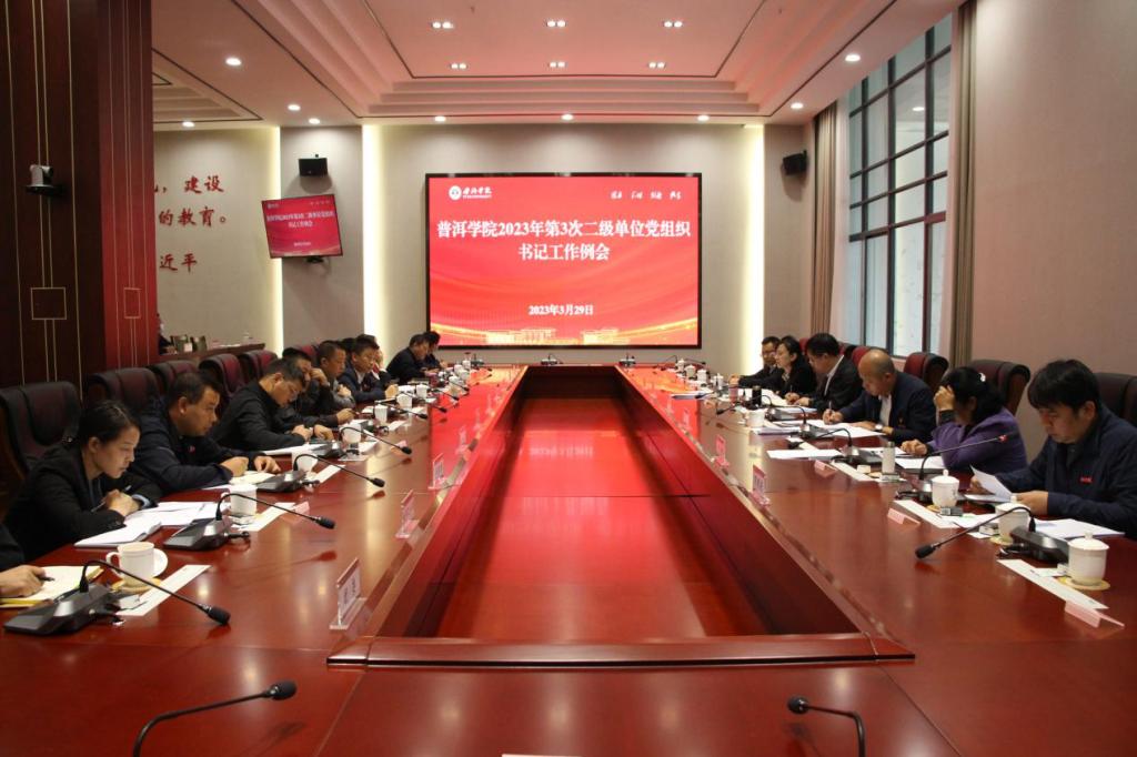 3月29日上午,普洱学院召开2023年第3次二级单位组织书记工作例会。党委书记胡国云出席会议并讲话。党委副书记吴琳主持会议。党委副书记李险峰、党委委员叶敏、高龙、周顺东出席会议,相关部门主要负责人,各党总支(直属党支部)书记、副书记参加会议。