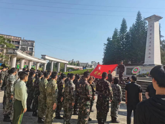 国防后备连新成员在纪念碑前庄重宣誓,坚定的声音回荡在上空,循着先烈们的足迹,开始新的征程。