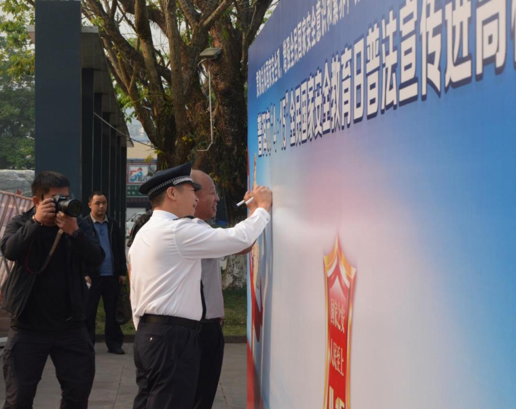 全体参加活动人员在国旗下进行宣誓,在签名墙上表明决心。同学们纷纷表示:作为青年学生,要始终心怀炽热爱国情,攥紧拳拳中国心,自觉坚持把个人成长成才和维护国家安全相互融会贯通,树立“有国才有家”的国家安全观念,在新时代踔厉奋发,砥砺前行,为实现国家和社会治理体系和治理能力的现代化,为中华民族的伟大复兴贡献自己的力量!