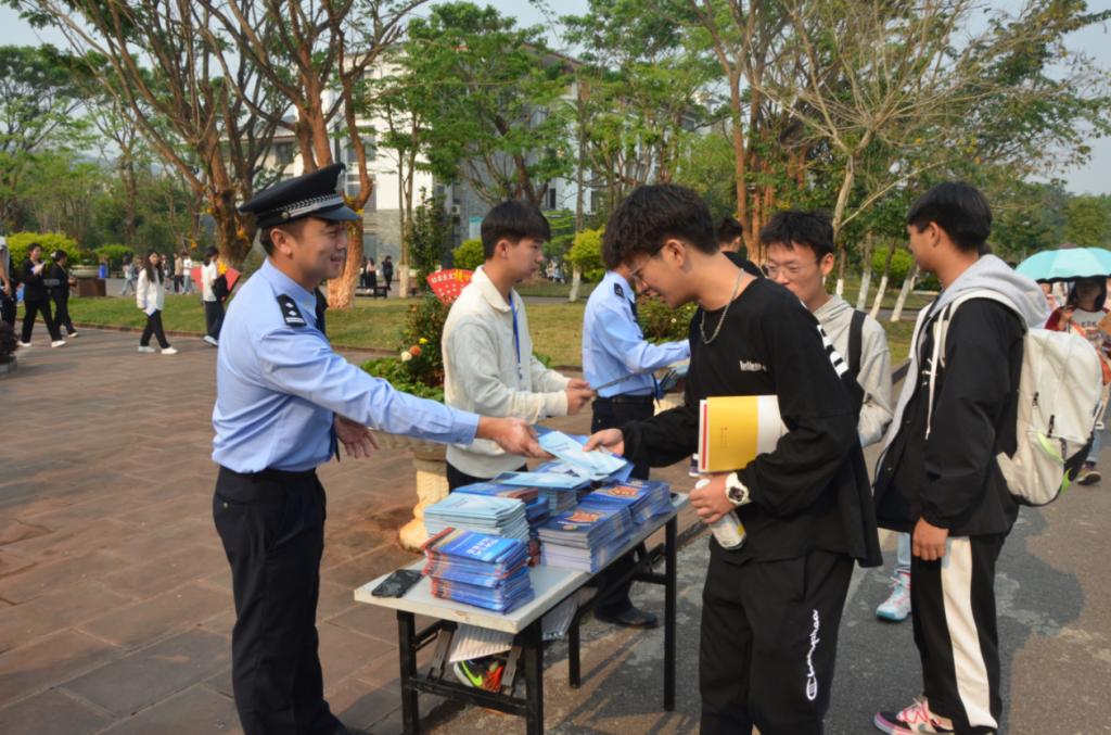 活动现场,民警们结合普法强基补短板专项行动,通过法治课堂、现场普法等形式向学校师生进行普法宣传,并结合党和国家的民族、宗教政策,就如何识邪、防邪、反邪和防范电信网络诈骗向同学们进行宣讲;法律协会的同学和民警们一同在校园为广大师生发放宣传册并进行现场咨询解答。