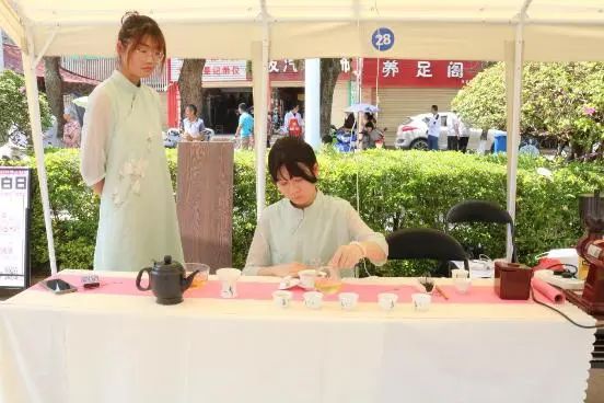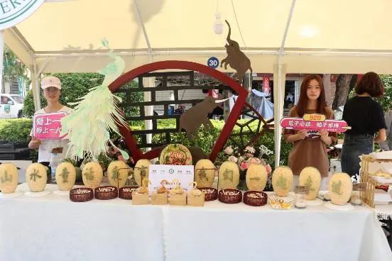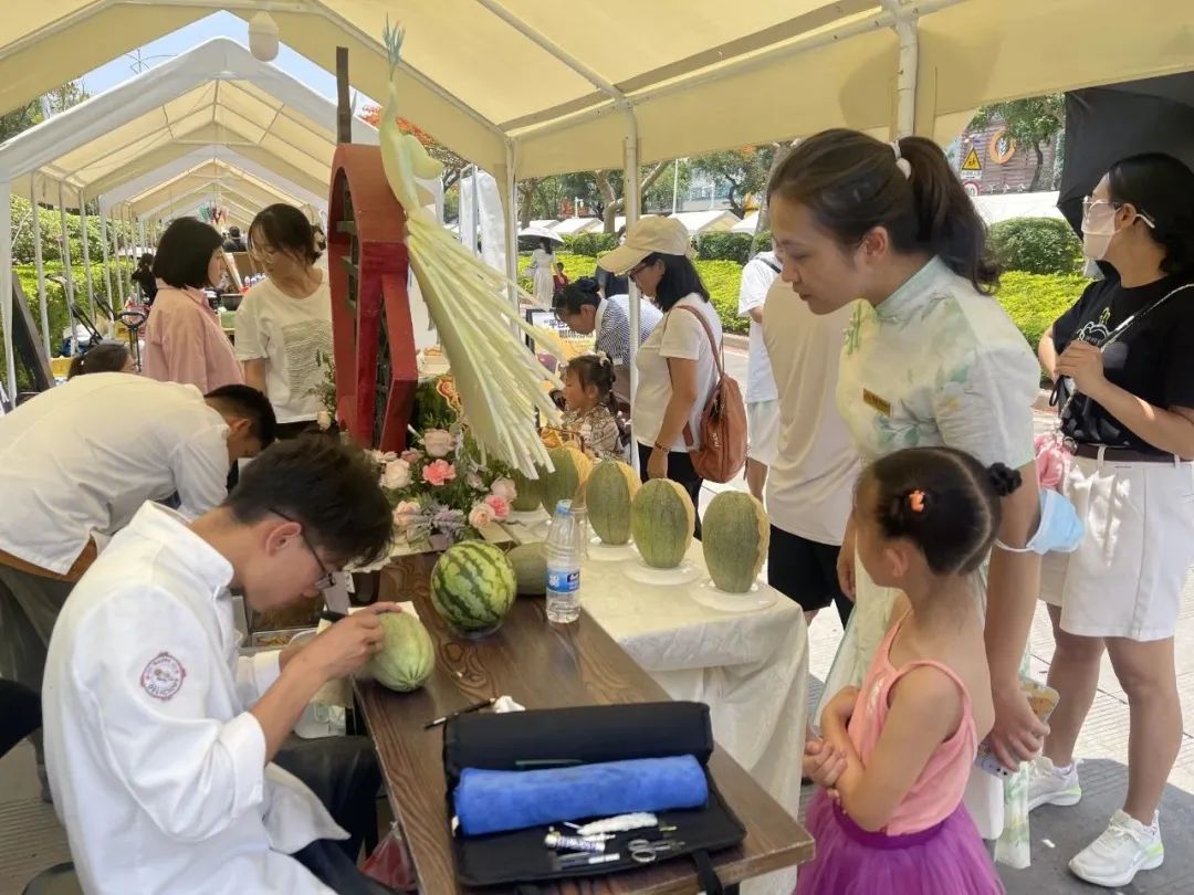 不仅如此,在这里还有经济管理学院同学制作的520限定西点、艺术瓜雕,茶叶咖啡学院同学呈现的茶叶与咖啡冲泡工艺,艺术学院同学展示的绝版木刻作品,向大家表达了对学校、对专业的热爱。