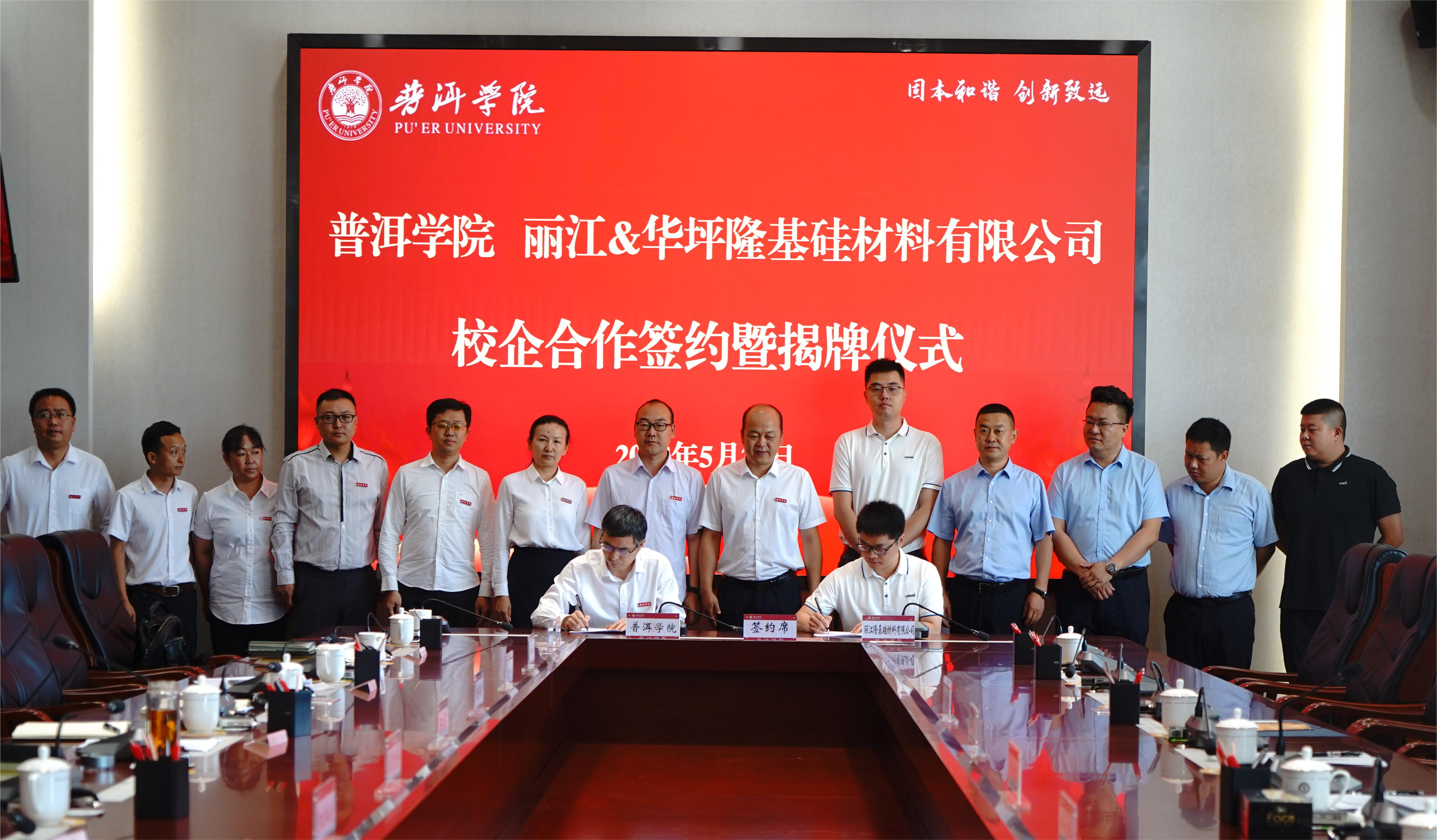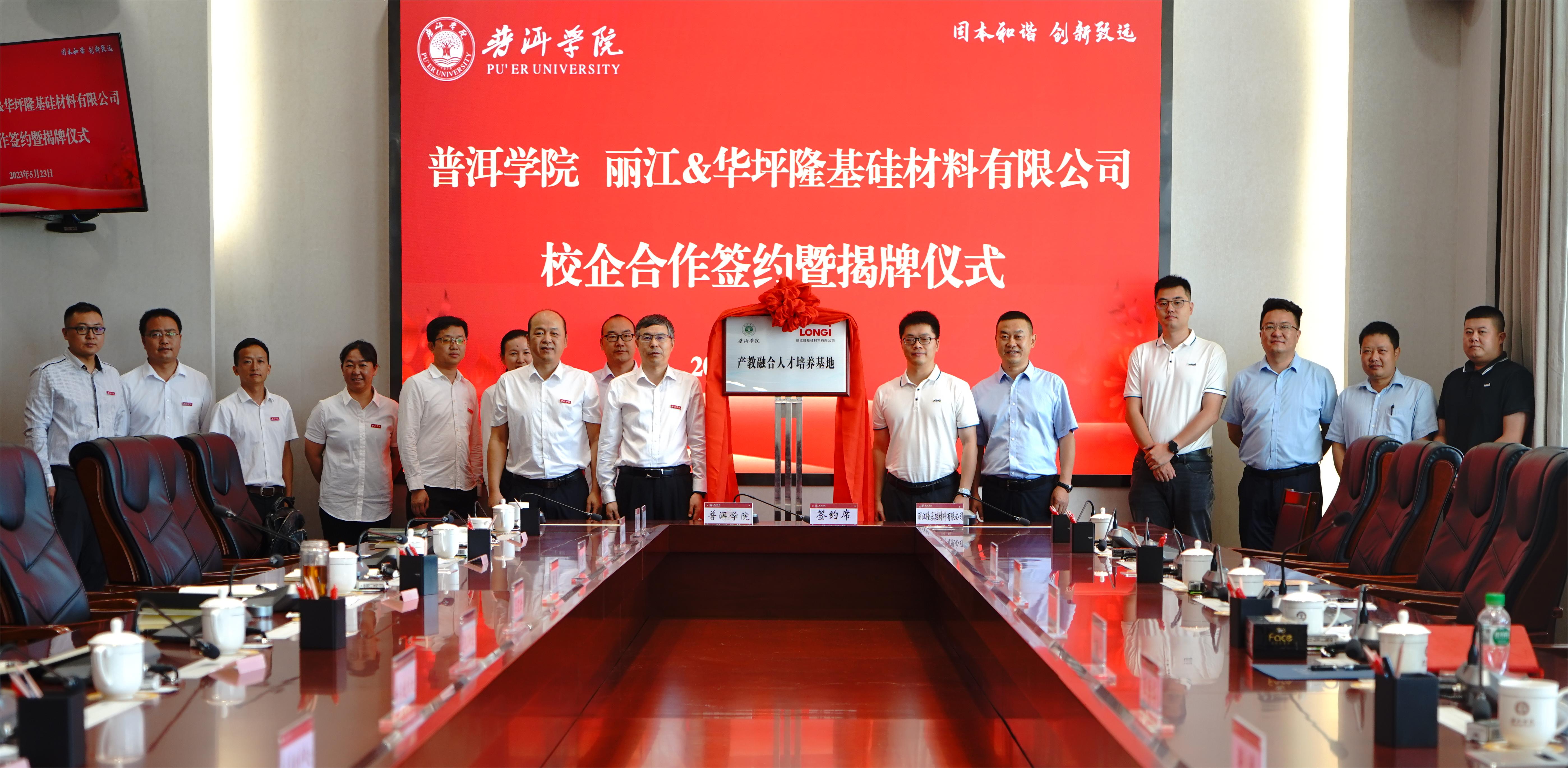 5月23日,普洱学院与丽江隆基硅材料有限公司举行校企合作签约暨揭牌仪式。普洱学院党委副书记、院长马文会,副院长陈勇,隆基硅材料有限公司高级经理郭家亮出席。