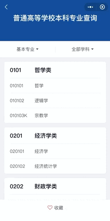 “普通高等学校本科专业查询”