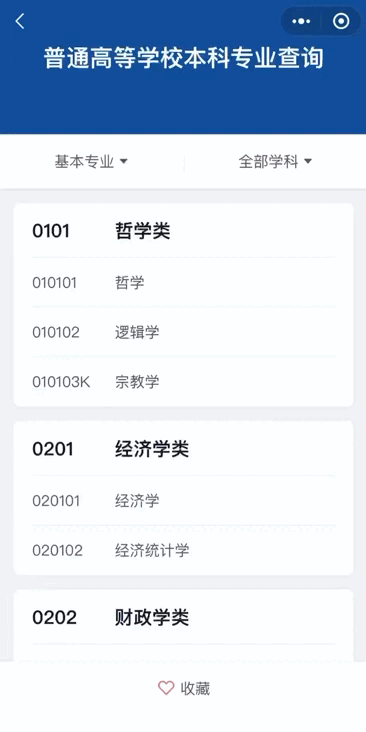 你可以根据需求,按【基本专业】和【特设专业】筛选名单;