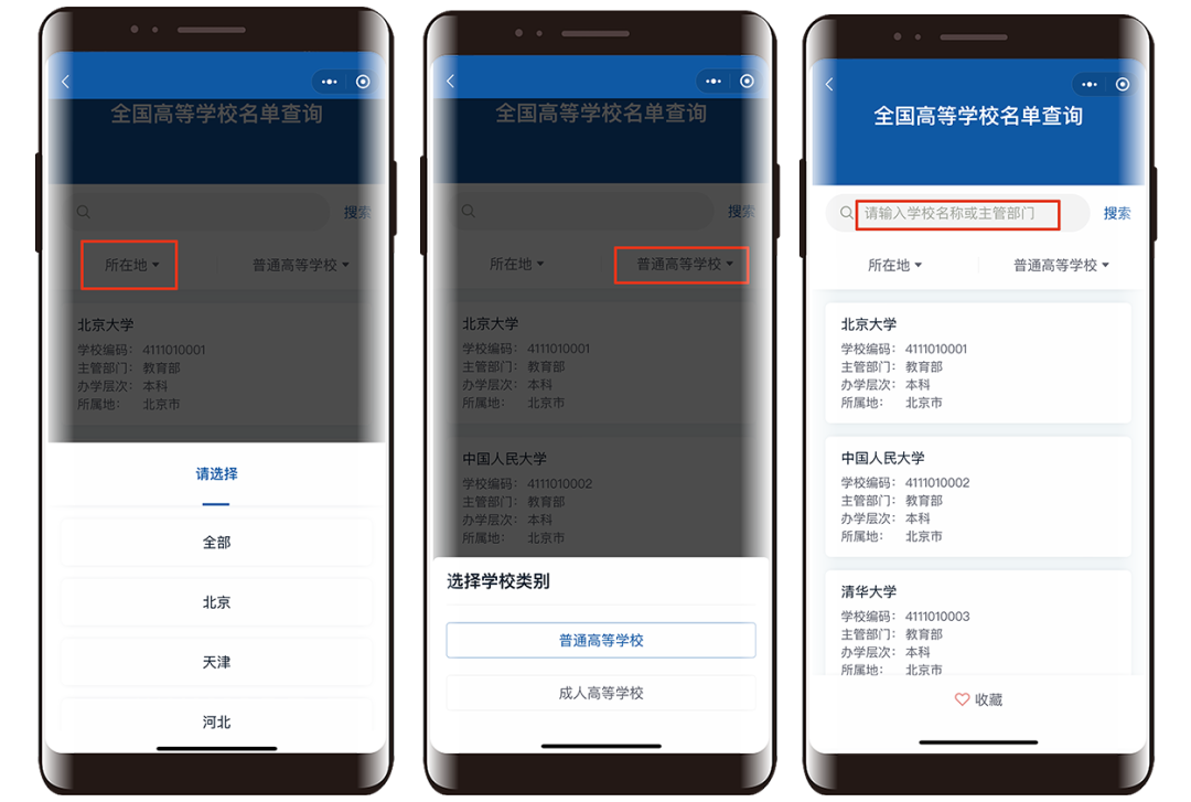 “全国高等学校名单查询”查一查,