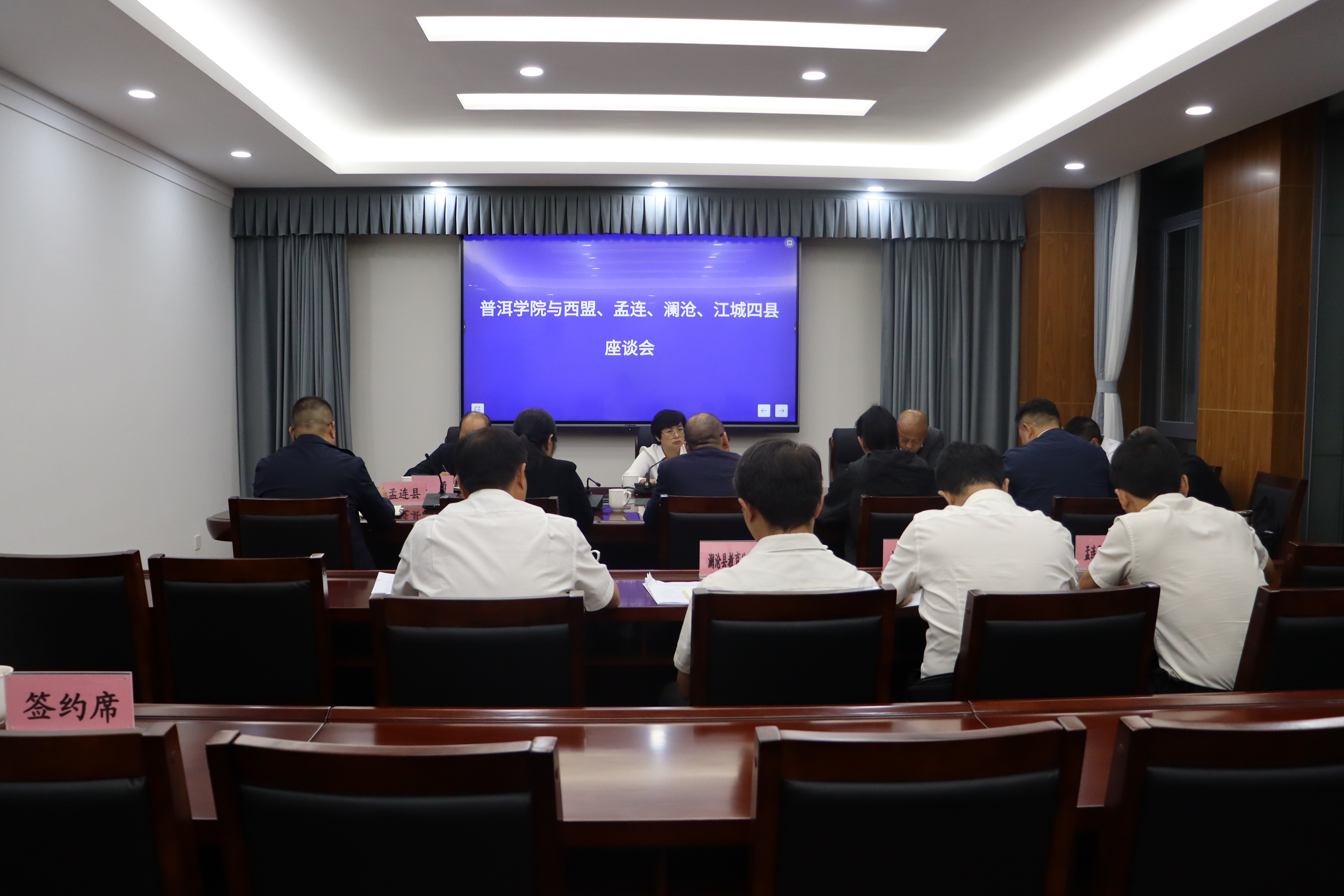 普洱学院与普洱市政府,普洱市相关部门以及江城、澜沧、孟连、西盟4个边境县进行座谈交流。