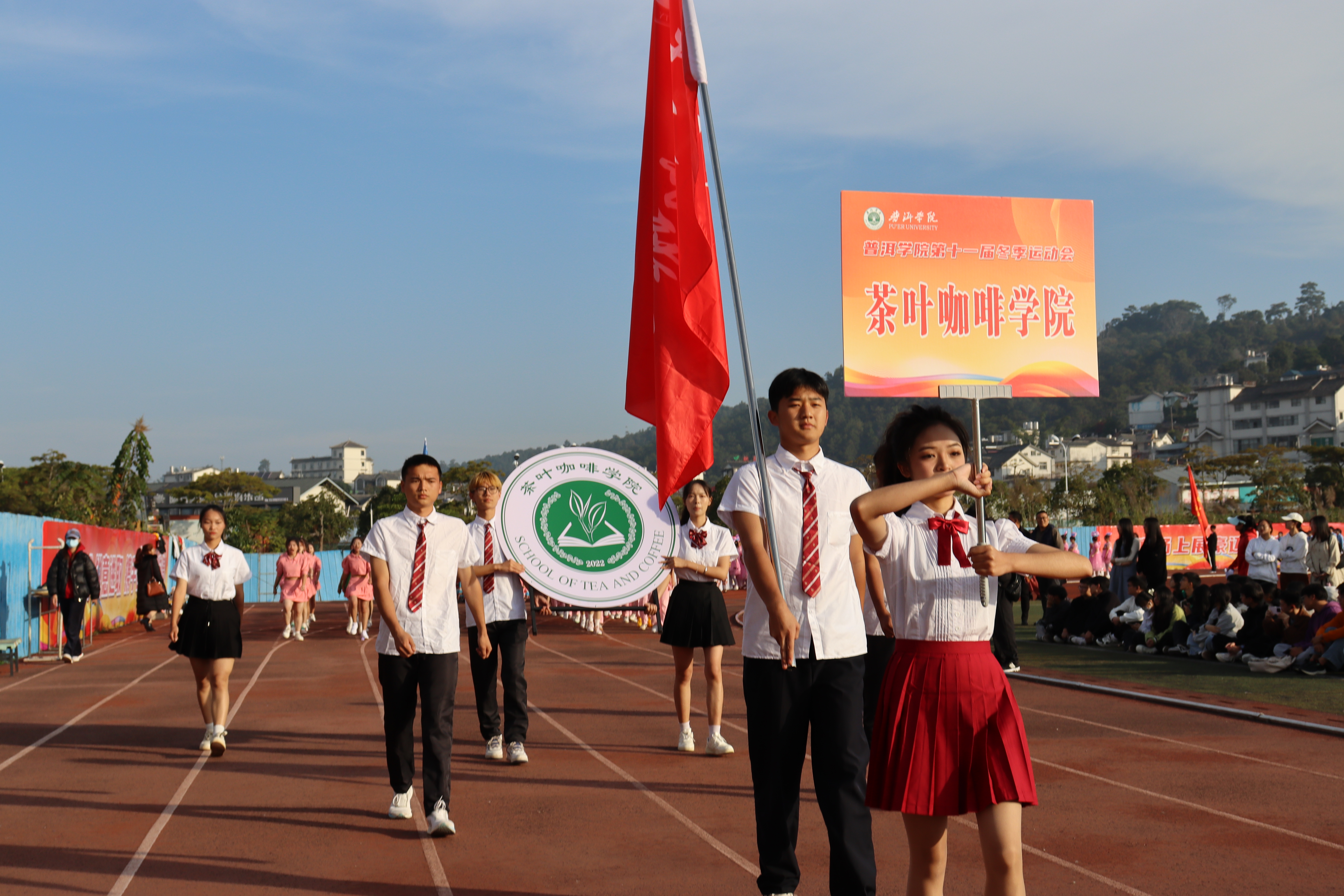 茶叶咖啡学院代表队,他们雄赳赳气昂昂,朝气蓬勃闪闪发光,他们有态度有能力,将在绿茵场上见真章,他们有格局有胆识,将把体育精神传四方,让我们在运动场上一睹他们的风采吧。