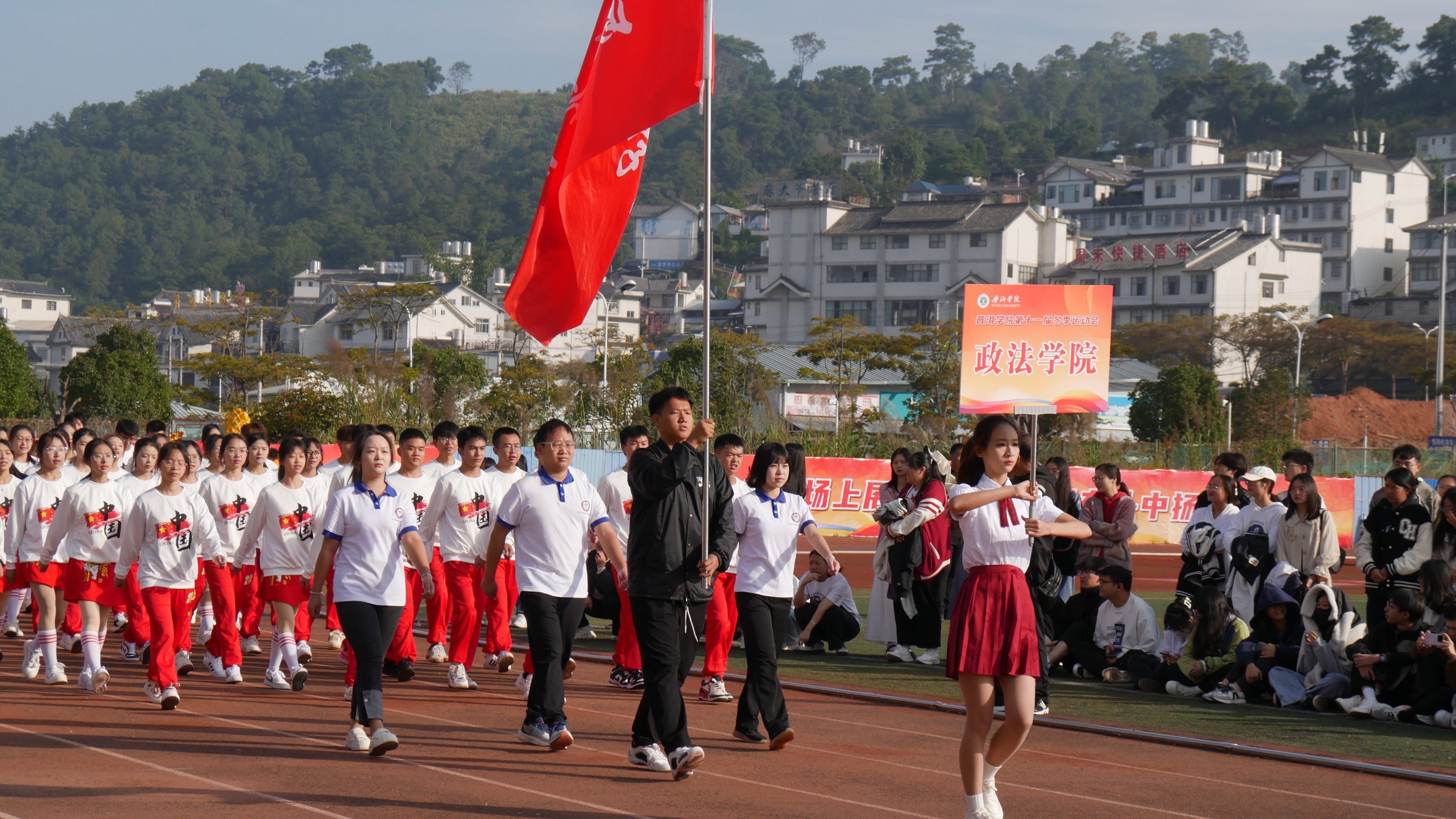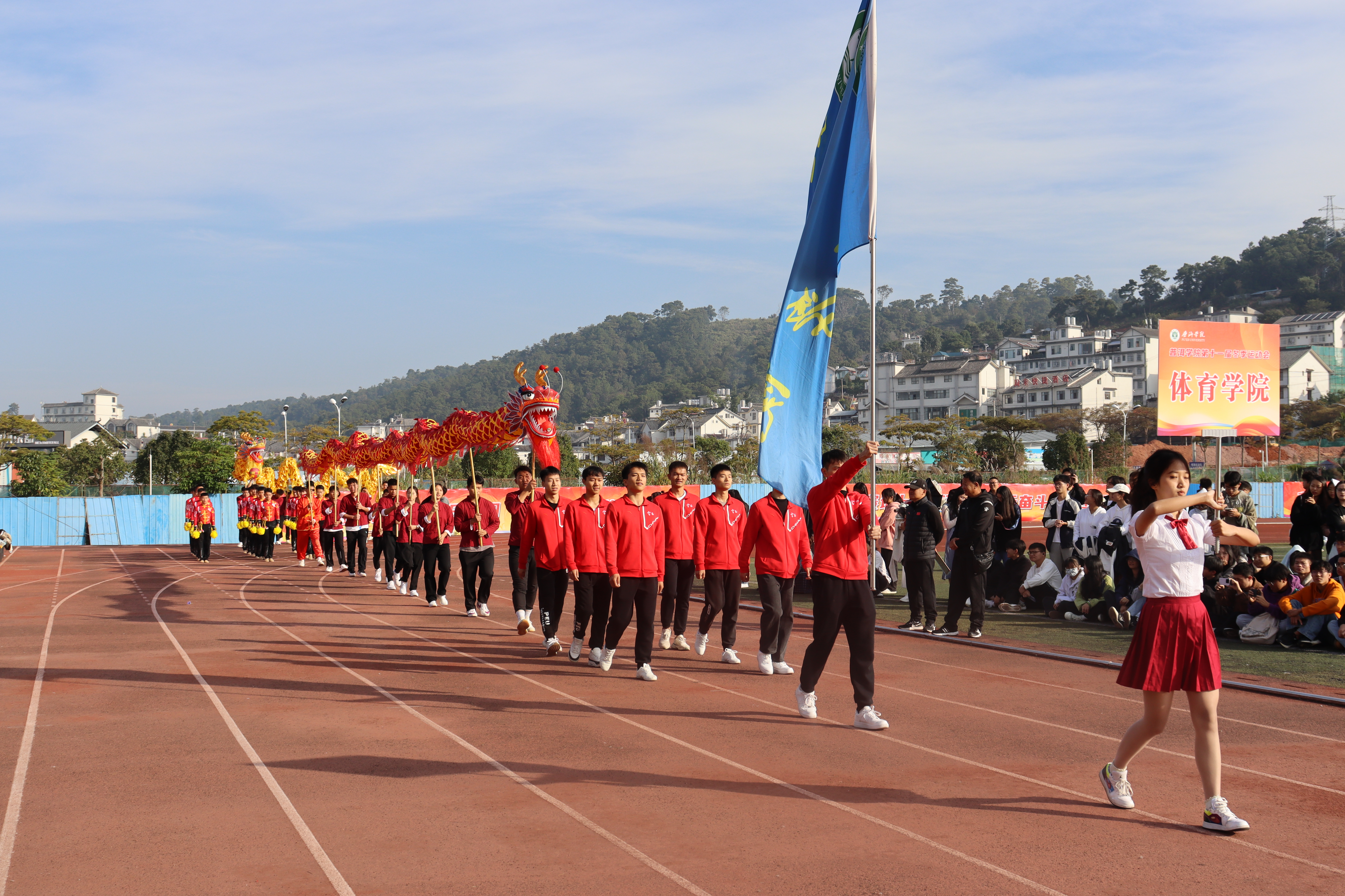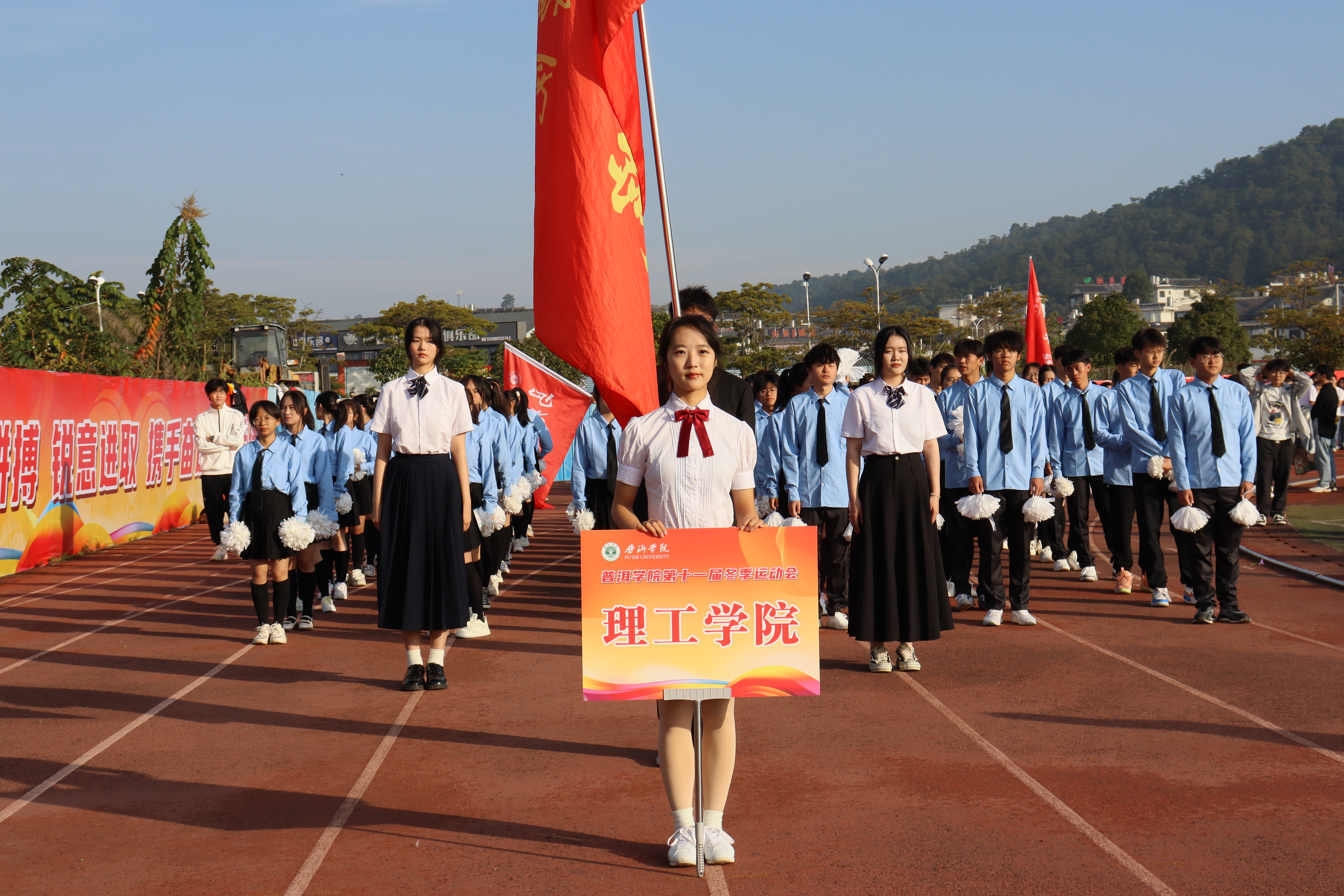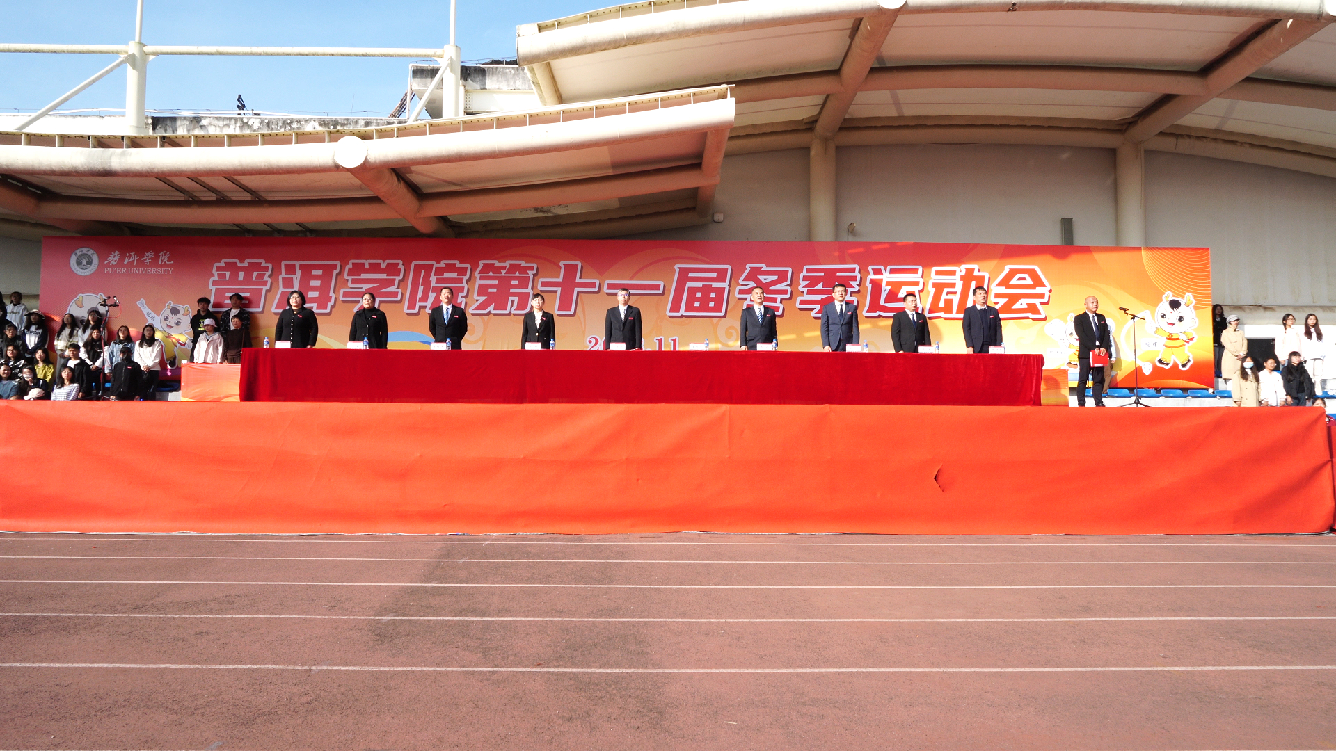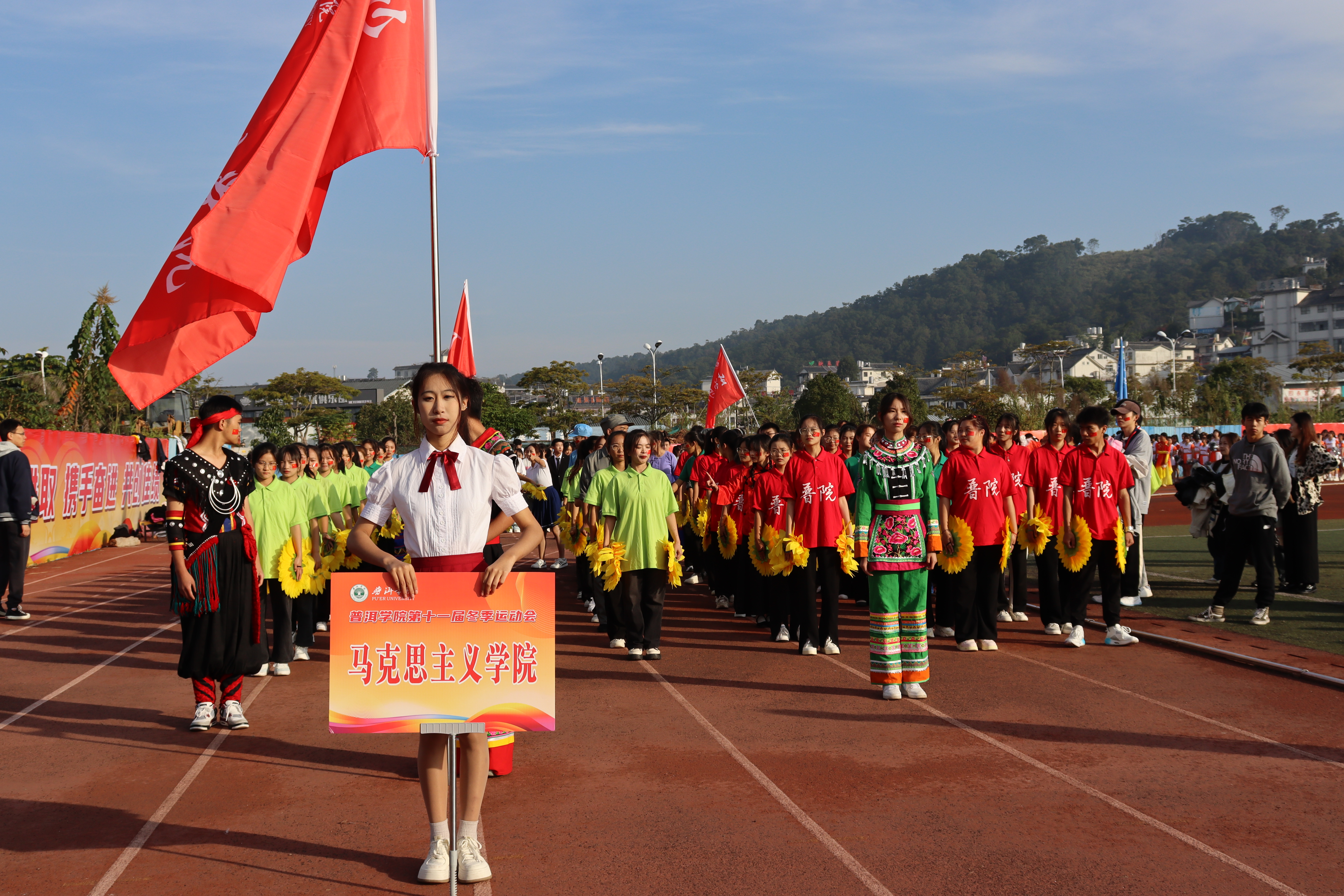 普洱学院第十一届冬季运动会于11月29日上午9点在田径场正式拉开序幕。党委副书记、院长马文会出席并宣布运动会开幕,党委副书记李险峰主持开幕式,党委副书记吴琳致辞,党政班子成员龚辉、李祖军、田洋、叶敏、高龙、杨萍、周顺东出席活动,各部门、二级学院负责人以及师生代表、运动员参加活动。