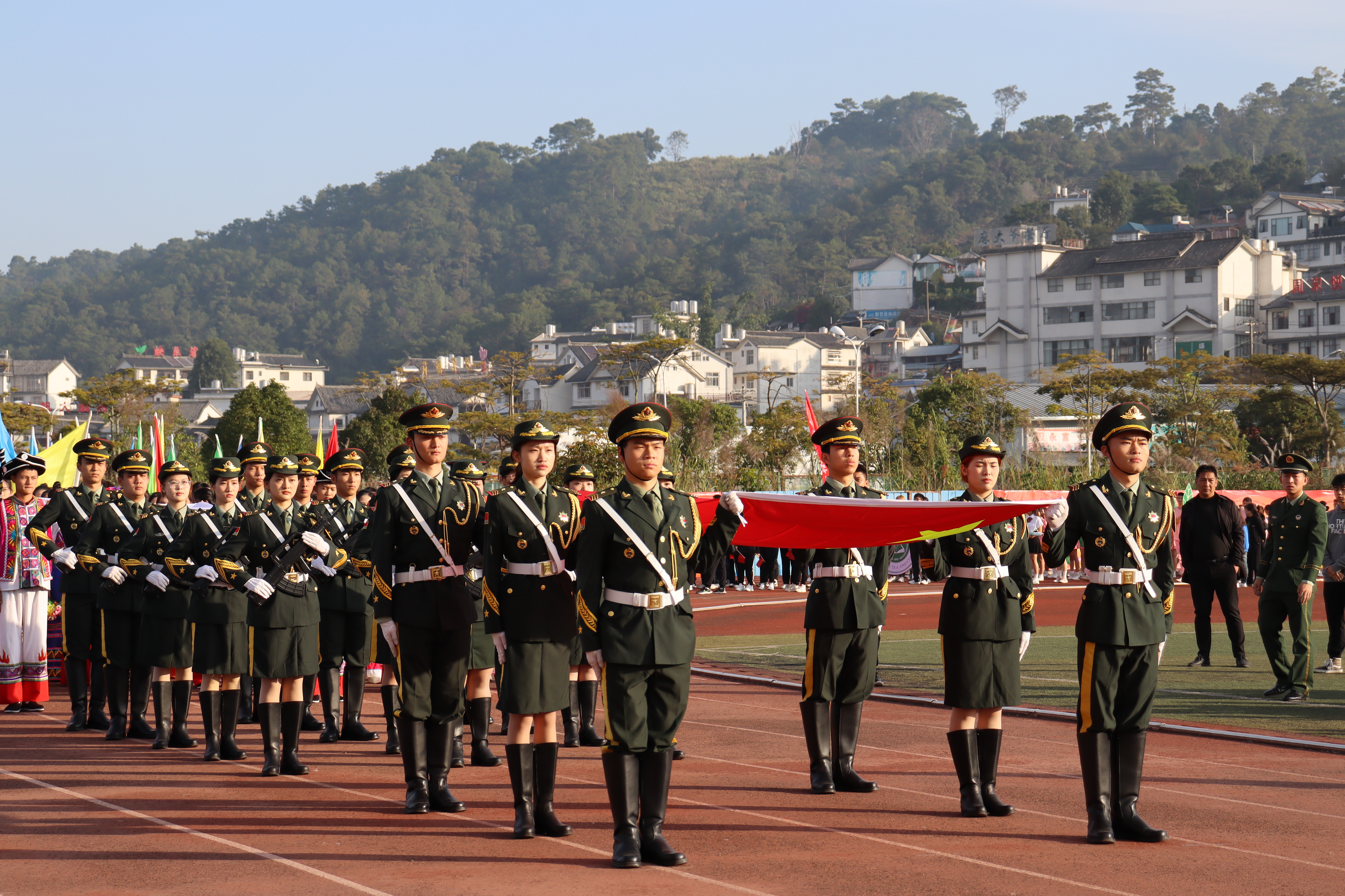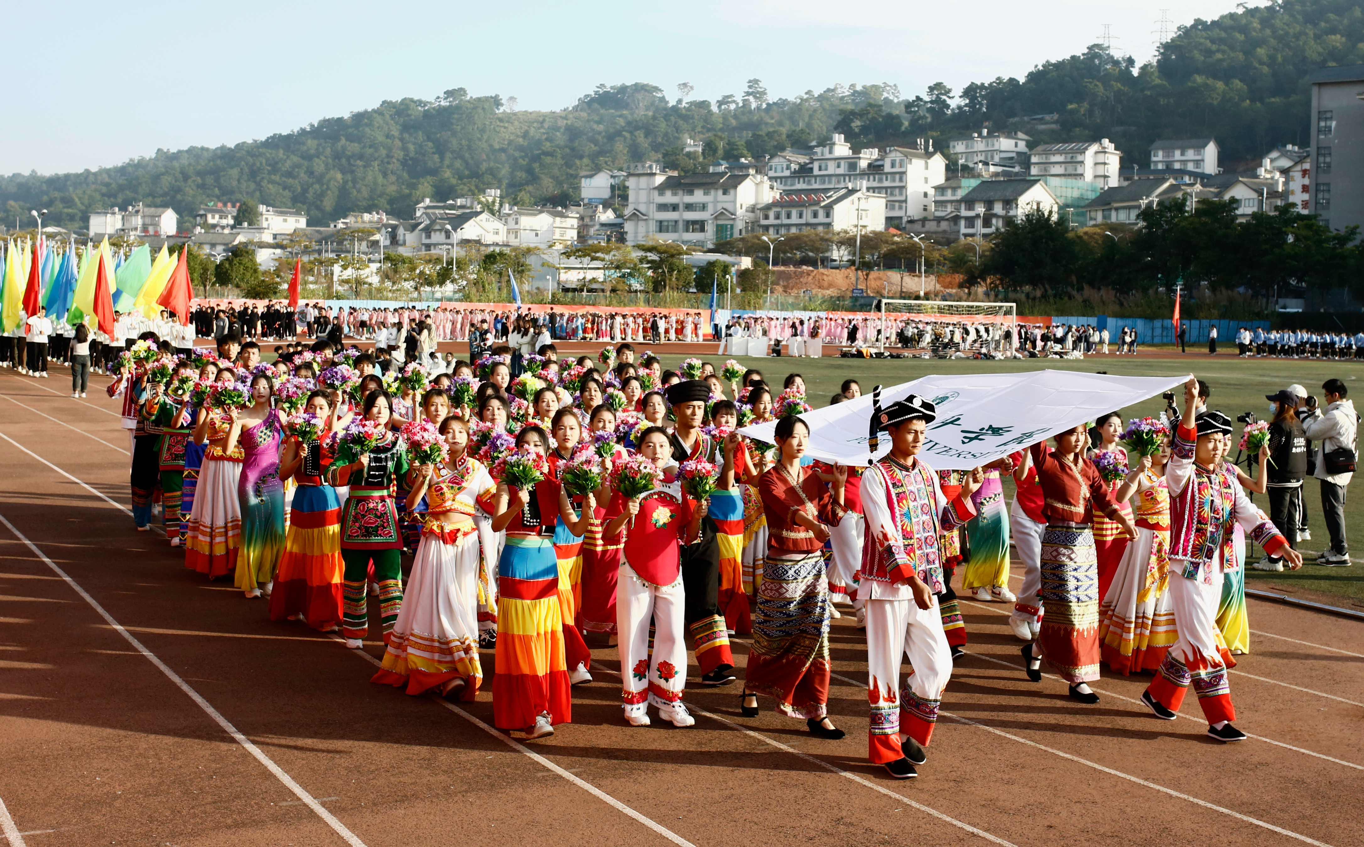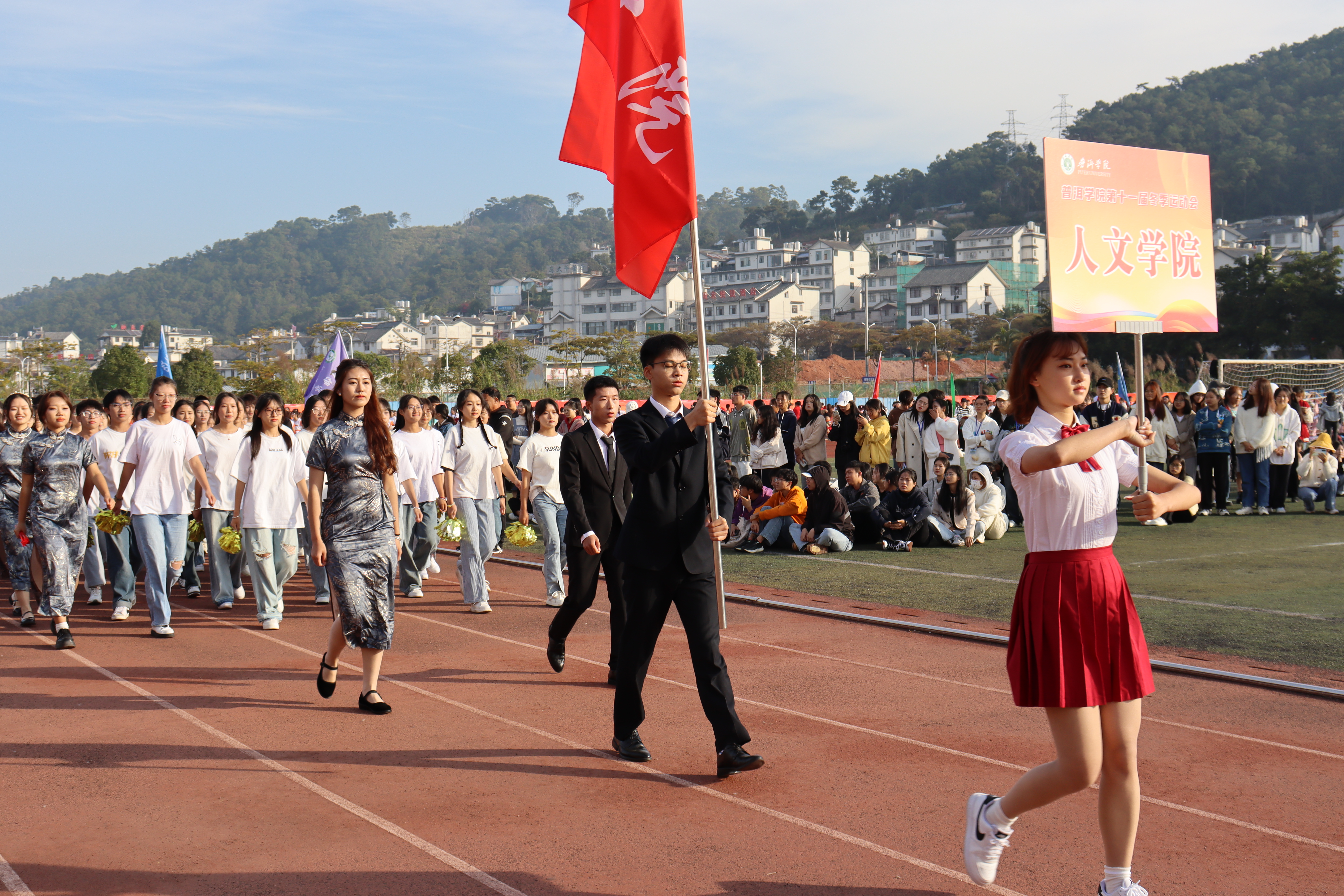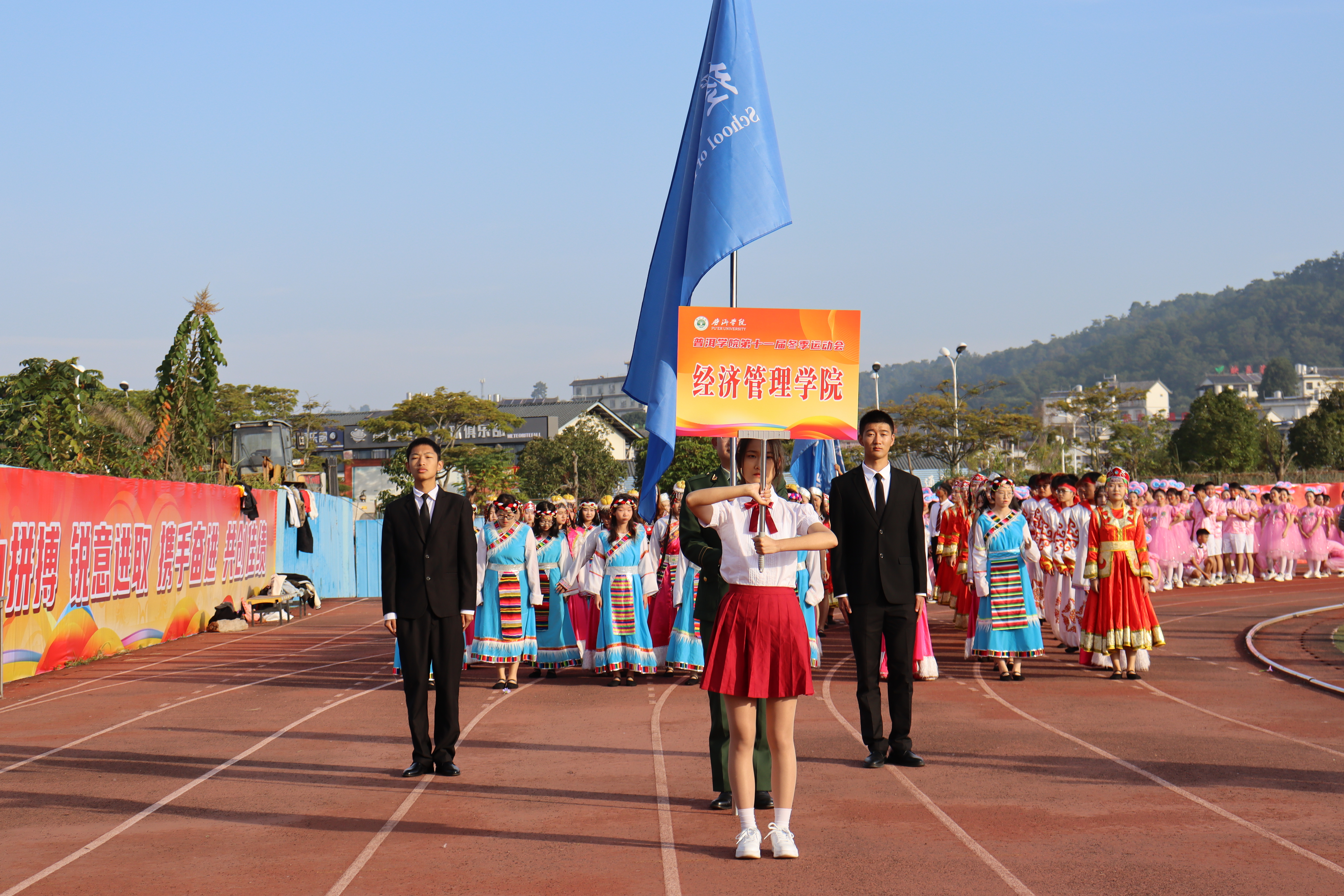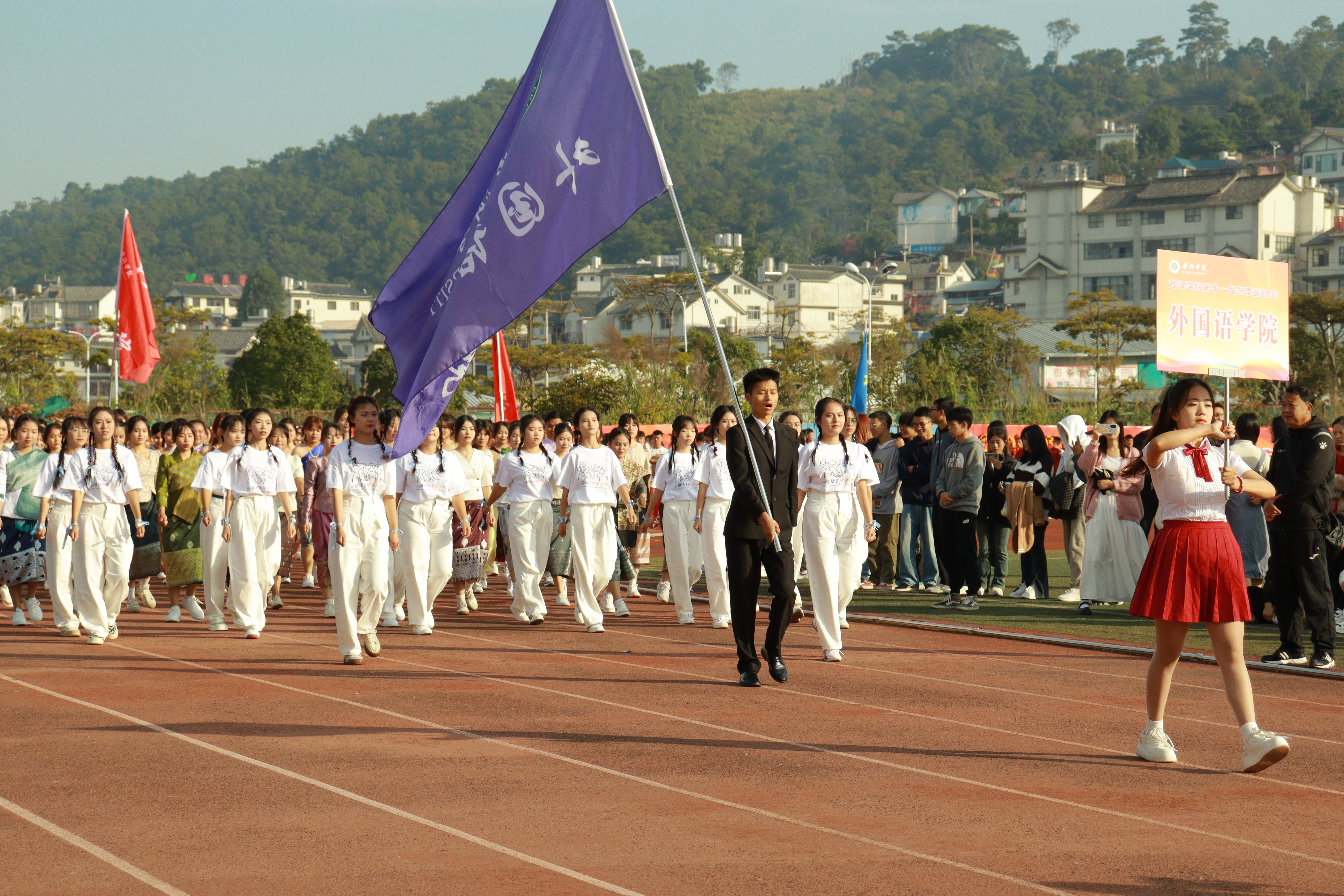 迎着冬日的暖阳,踏着青春的步伐,由中外学生组成的外国语学院代表队向着我们走来。来自中国、泰国、老挝、缅甸的四国学子齐聚普洱学院,他们高举梦想的旗帜,象征团结与力量;他们迈着自信的步伐,奏响青春的乐章,展现出各国青年的活力与激情。外国语学院积极响应国家“一带一路”倡议,引领各国学子用激情点燃梦想,用拼搏铸就辉煌。