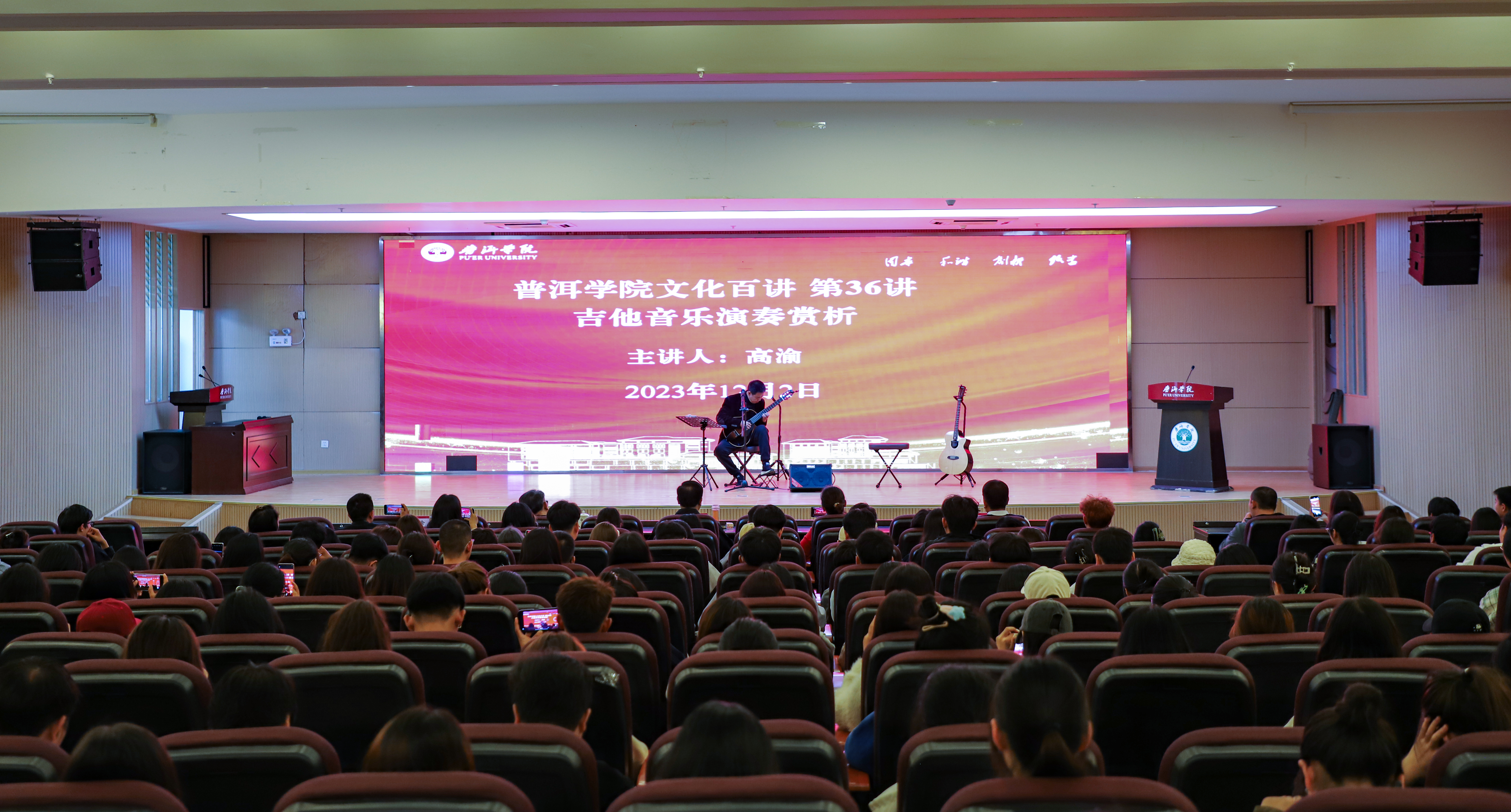 12月2日下午,普洱学院举行文化百讲第三十六讲,邀请普洱市吉他学会会长高渝作《西班牙吉他学习与演奏之我见》专题讲座,党委书记胡国云,中国科技产业化促进会数字乡村振兴工作委员会主任、农业农村部农业信息化标准化重点实验室主任高万林及其团队成员出席讲座,党委委员、宣传部部长周顺东主持讲座。全校300余名师生参加。