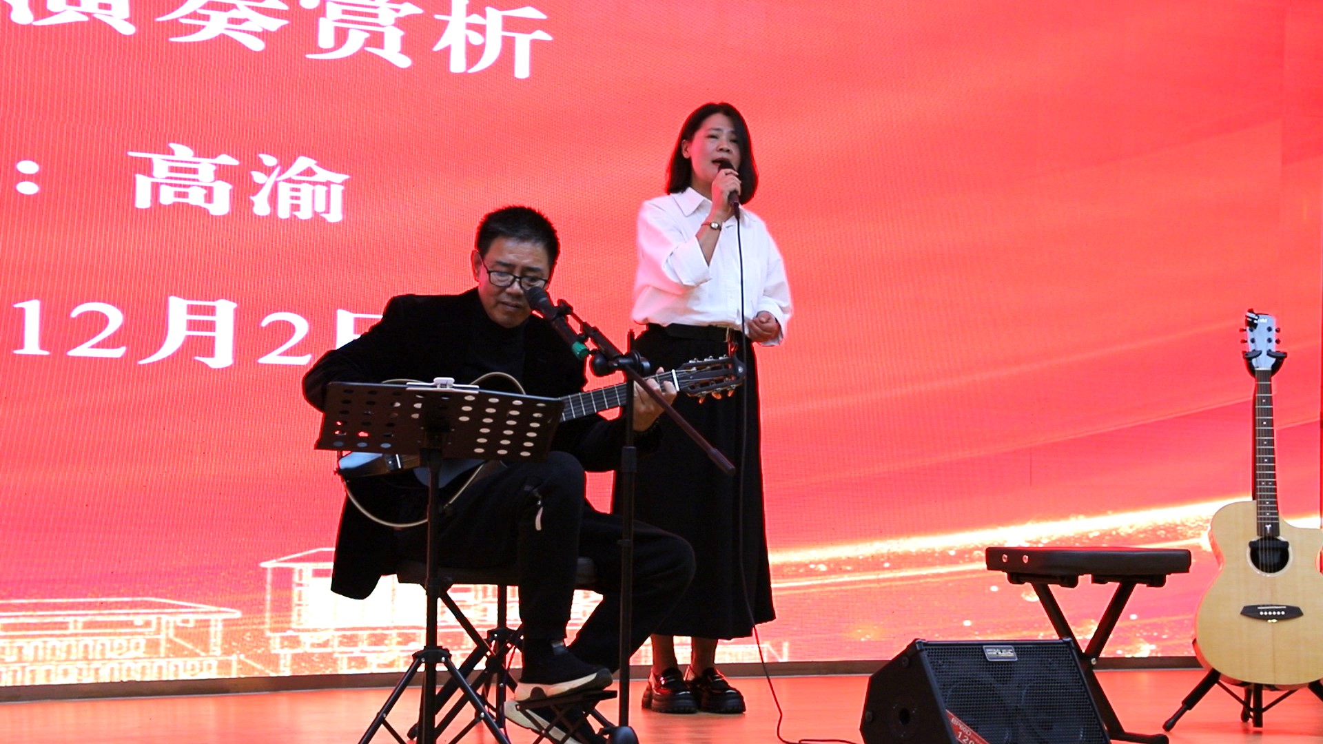 在音乐赏析环节,高渝会长选取了《爱的罗曼史》、《西班牙斗牛》、《阿尔罕布拉宫的回忆》等多首具有代表性的吉他曲目进行现场演绎,使在场的师生们对吉他音乐有了更加深刻的理解。同时,高渝会长还鼓励大家在欣赏音乐的过程中,要学会用心去感受音乐所传达的情感,从而提升自己的音乐素养。