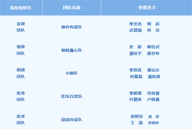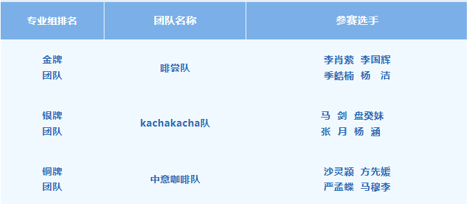 本次中国咖啡师团体锦标赛西南区站吸引了来自“中国咖啡之都”普洱的5支专业组团队、11支院校组团队,共63名参赛选手参赛。啡尝队、咖亦有道队在比赛中脱颖而出,分获专业组和院校组金牌团队。