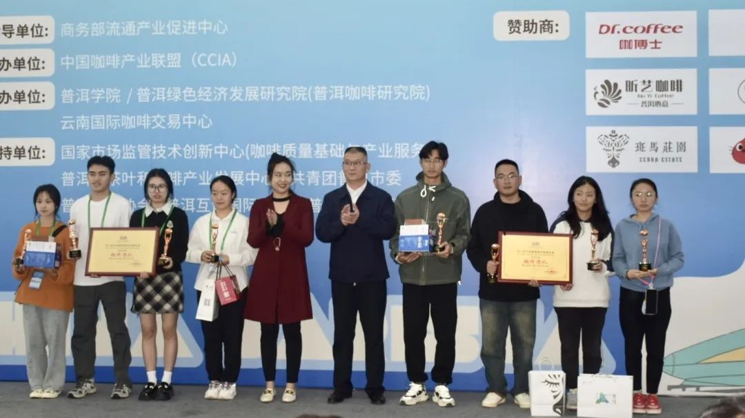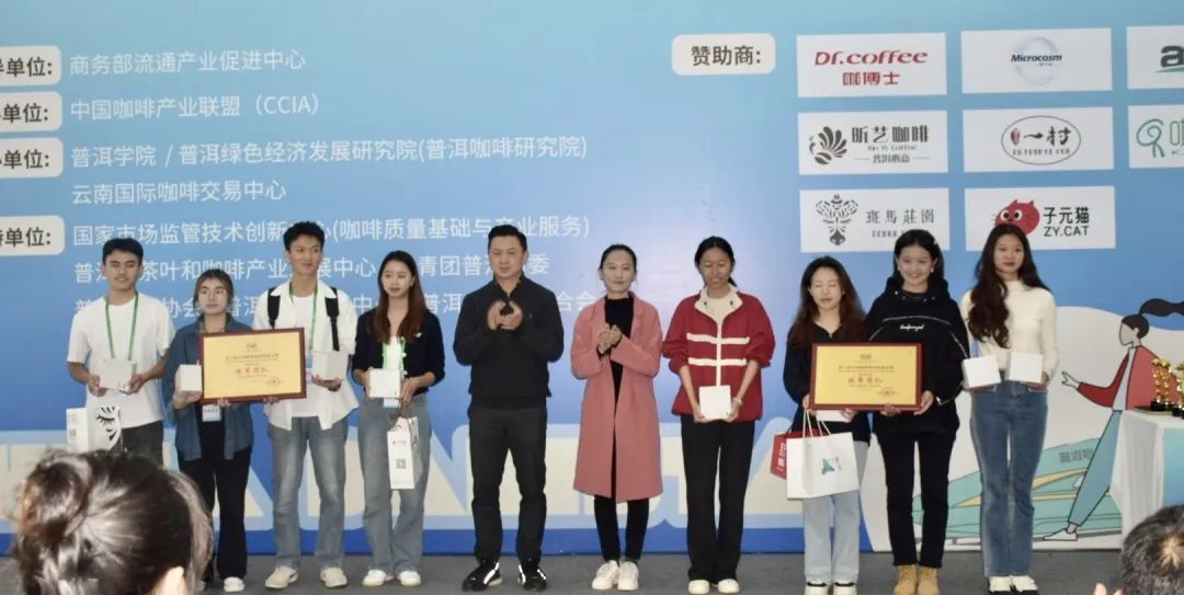 普洱学院党委委员、副院长田洋以及普洱咖啡协会、云南国际咖啡交易中心以及普洱昕艺商贸有限公司、子元猫咖啡总经理等出席颁奖仪式并为获奖选手颁奖。