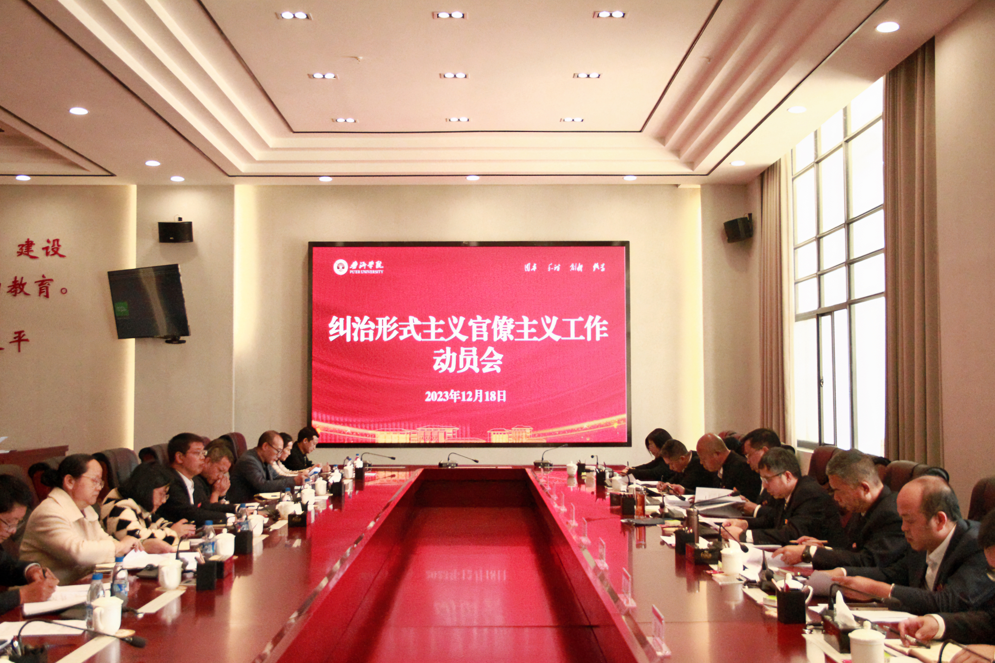 12月18日上午,普洱学院召开纠治形式主义官僚主义工作动员会。党委书记胡国云,党委副书记、院长马文会,党委副书记李险峰,党委委员、纪委书记、云南省监察委员会驻普洱学院监察专员龚辉,党委委员、副院长李祖军,副院长陈勇,以及党委委员叶敏、高龙、杨萍、周顺东出席会议。马文会主持会议。