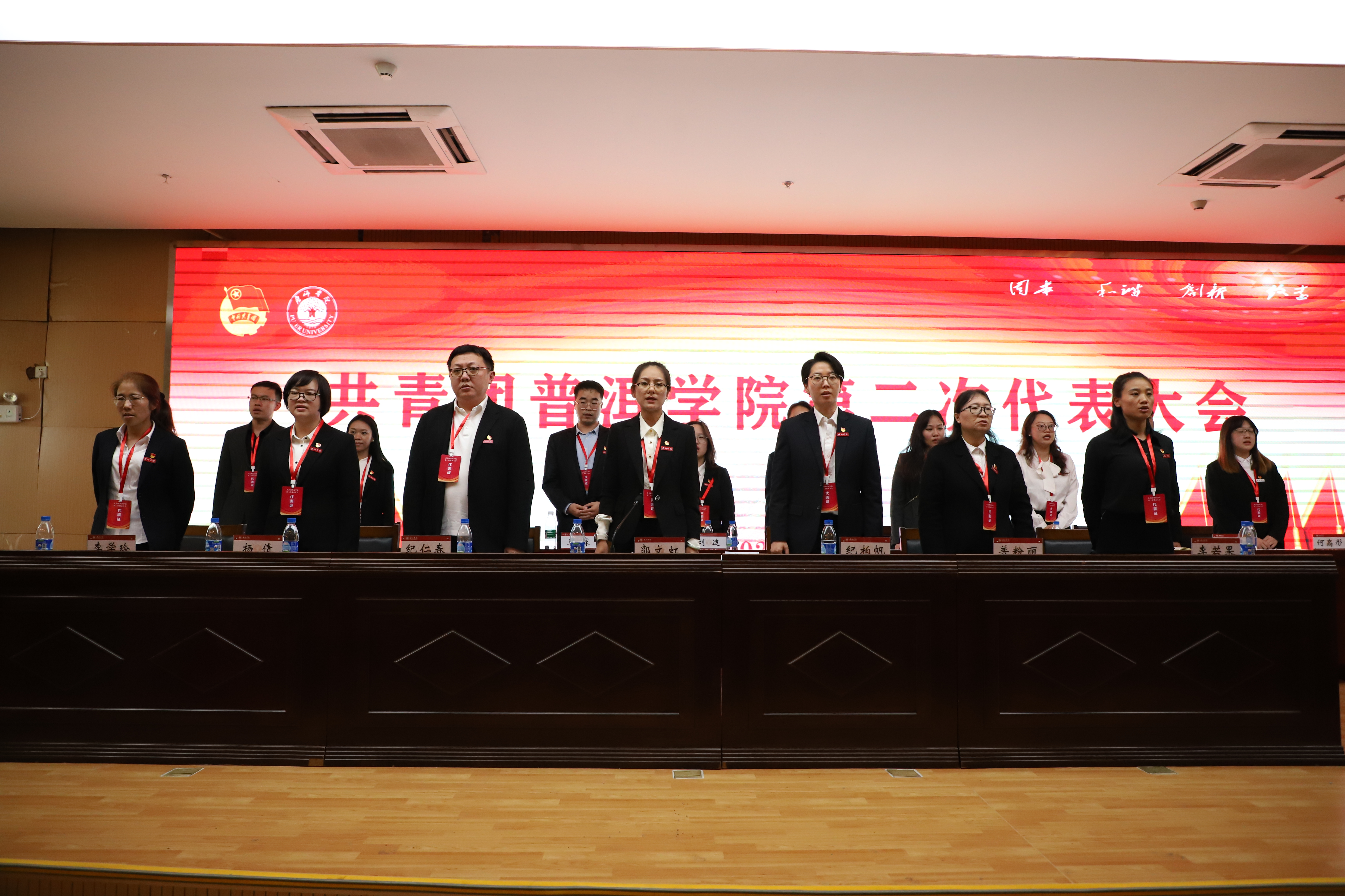 共青团普洱学院第二次代表大会在嘹亮的团歌声中落下帷幕。有关部门负责人,各二级学院党总支书记、副书记,各班级团支部书记及131名团代表,以及团市委书记何春参加会议。