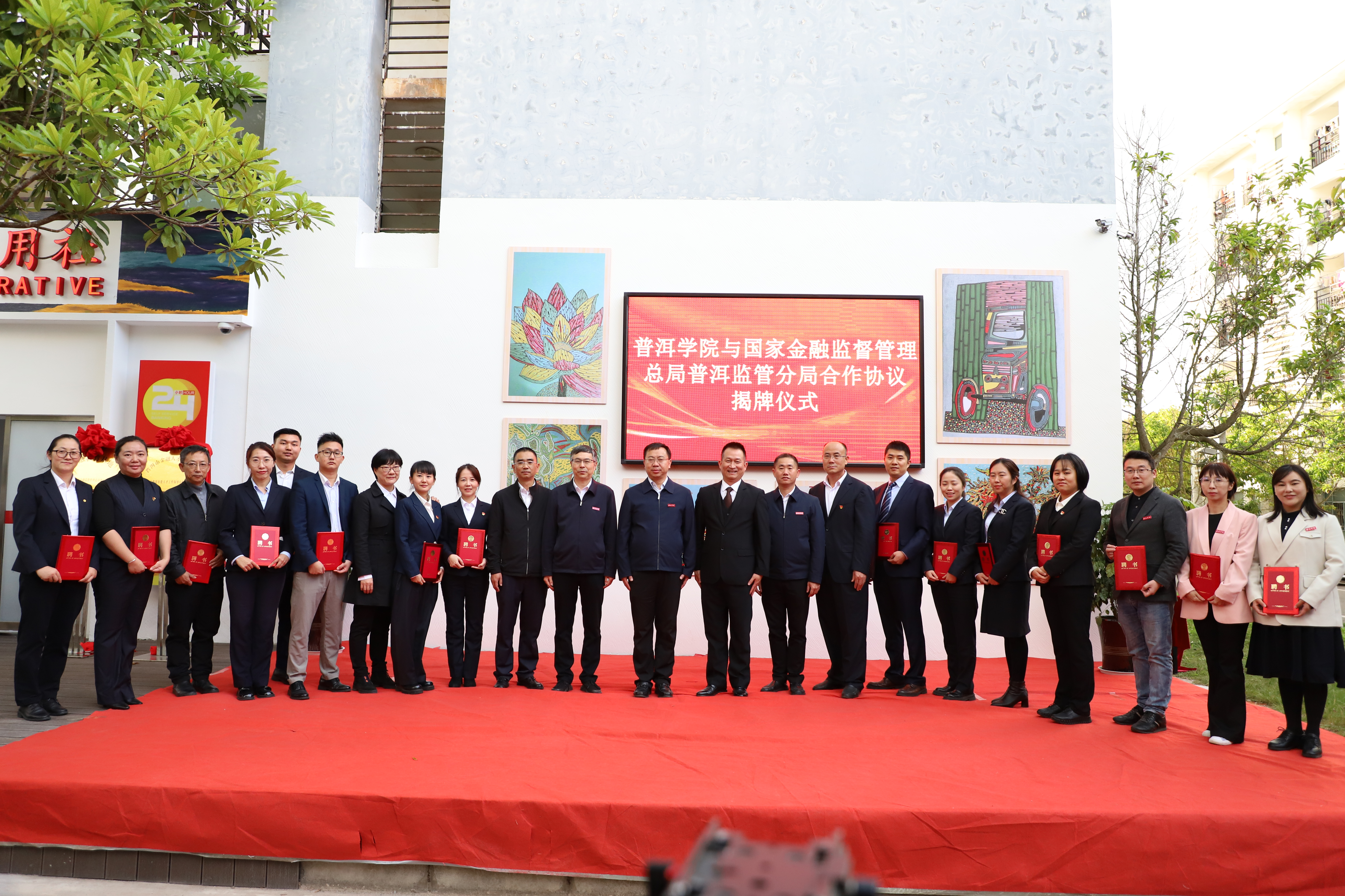 仪式上,普洱学院与国家金融监督管理总局普洱监管分局签署协议,举行“普洱市金融人才教育基地”“金融教育基地”揭牌仪式,并为金融教育基地金融讲师团成员颁发聘书。