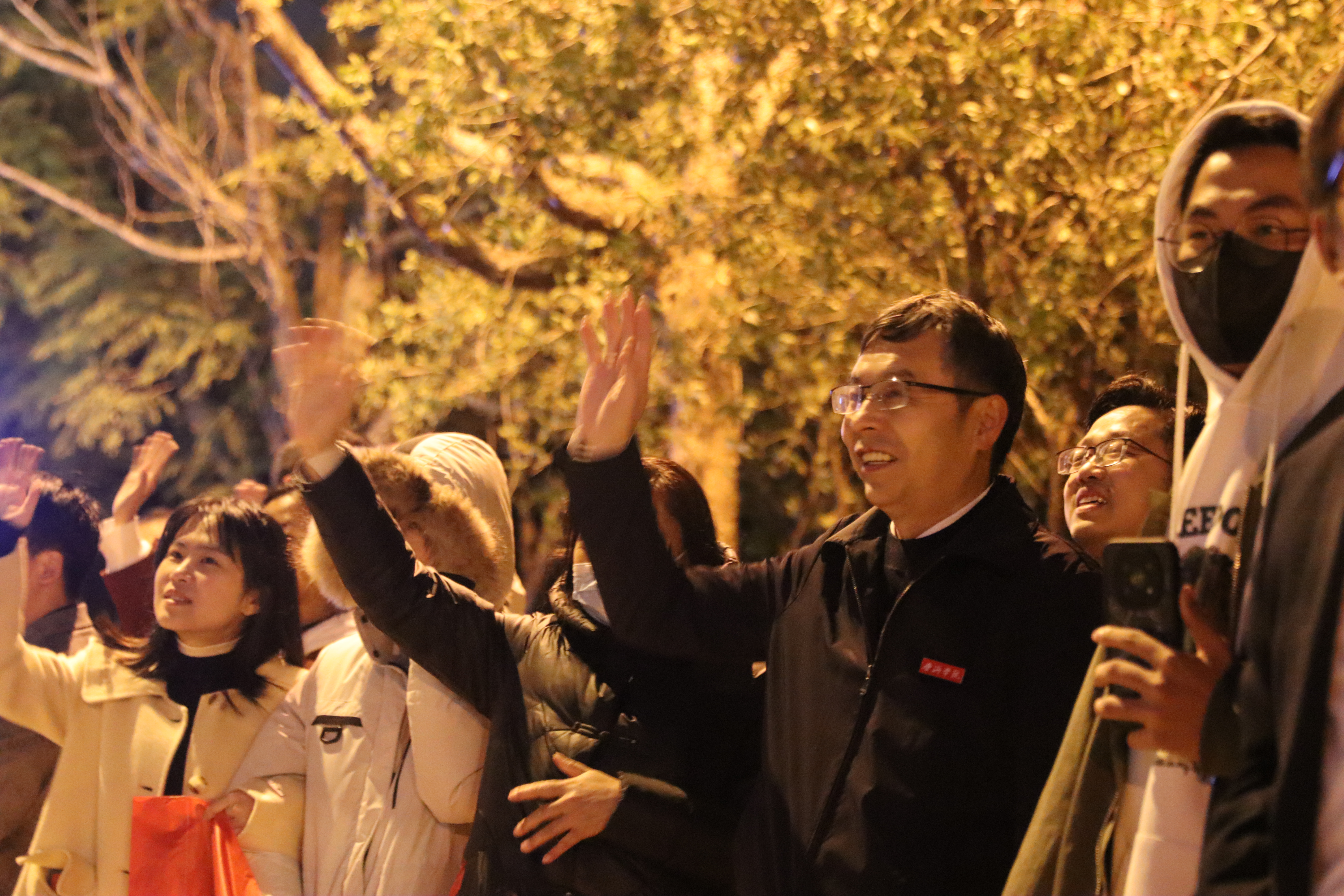 上午七时,天还未亮,党委副书记、院长马文会带领各相关部门、二级学院负责人和送考师生们早早来到出发点为考生们送考鼓劲。送考现场,送考师生们清点和引导考研学子有序乘车,细心提醒同学们查验所需证件、考试工具、考场信息等,以及正确乘坐车辆,确保万无一失。
