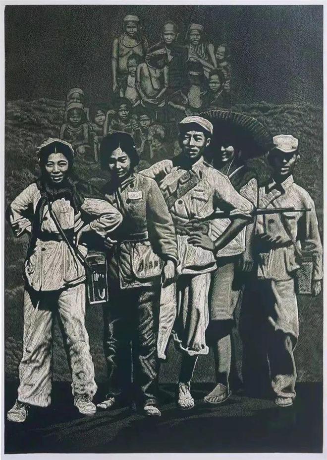 《民族工作队》 绝版木刻100×70㎝ 2021 第七届全国画院美术作品