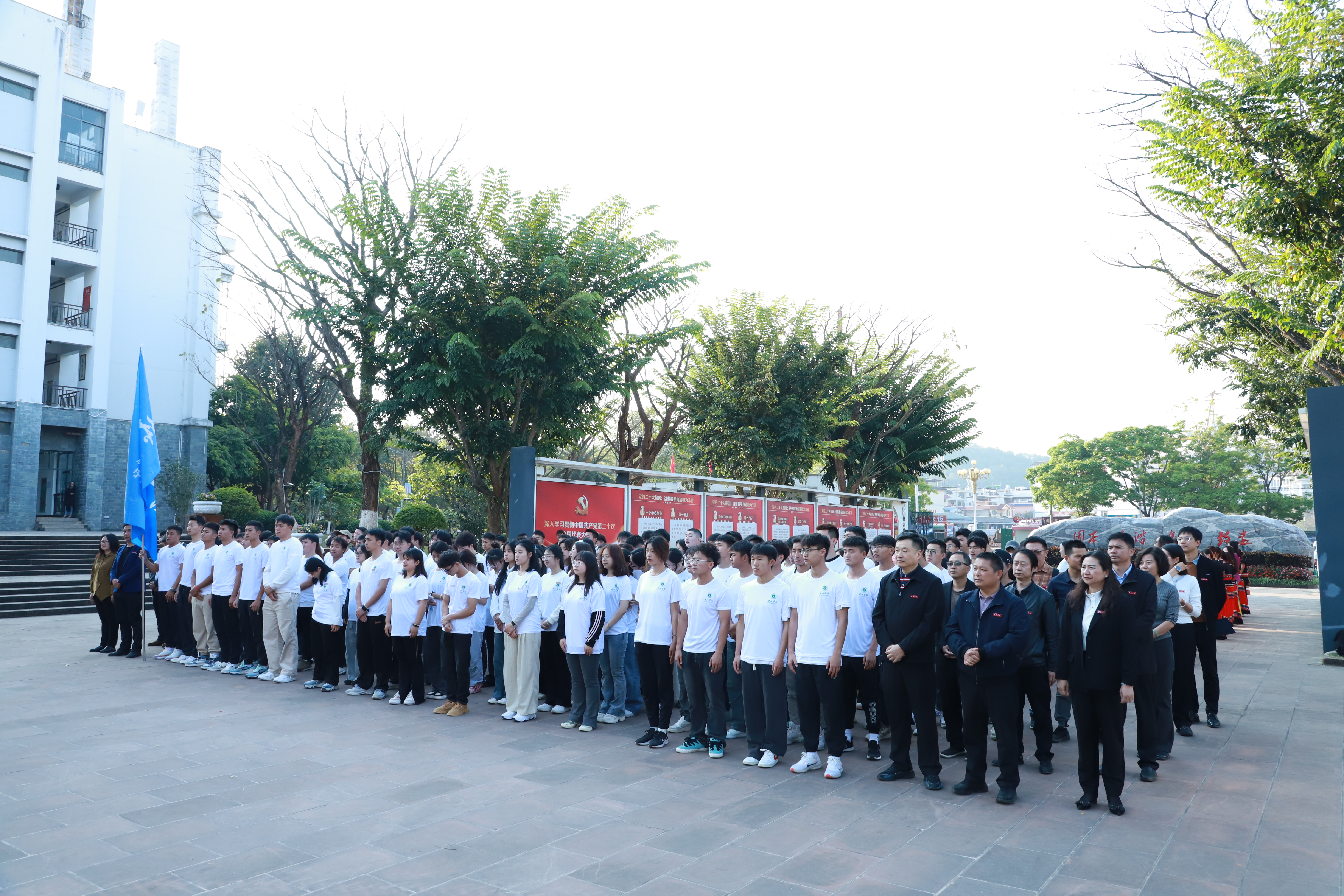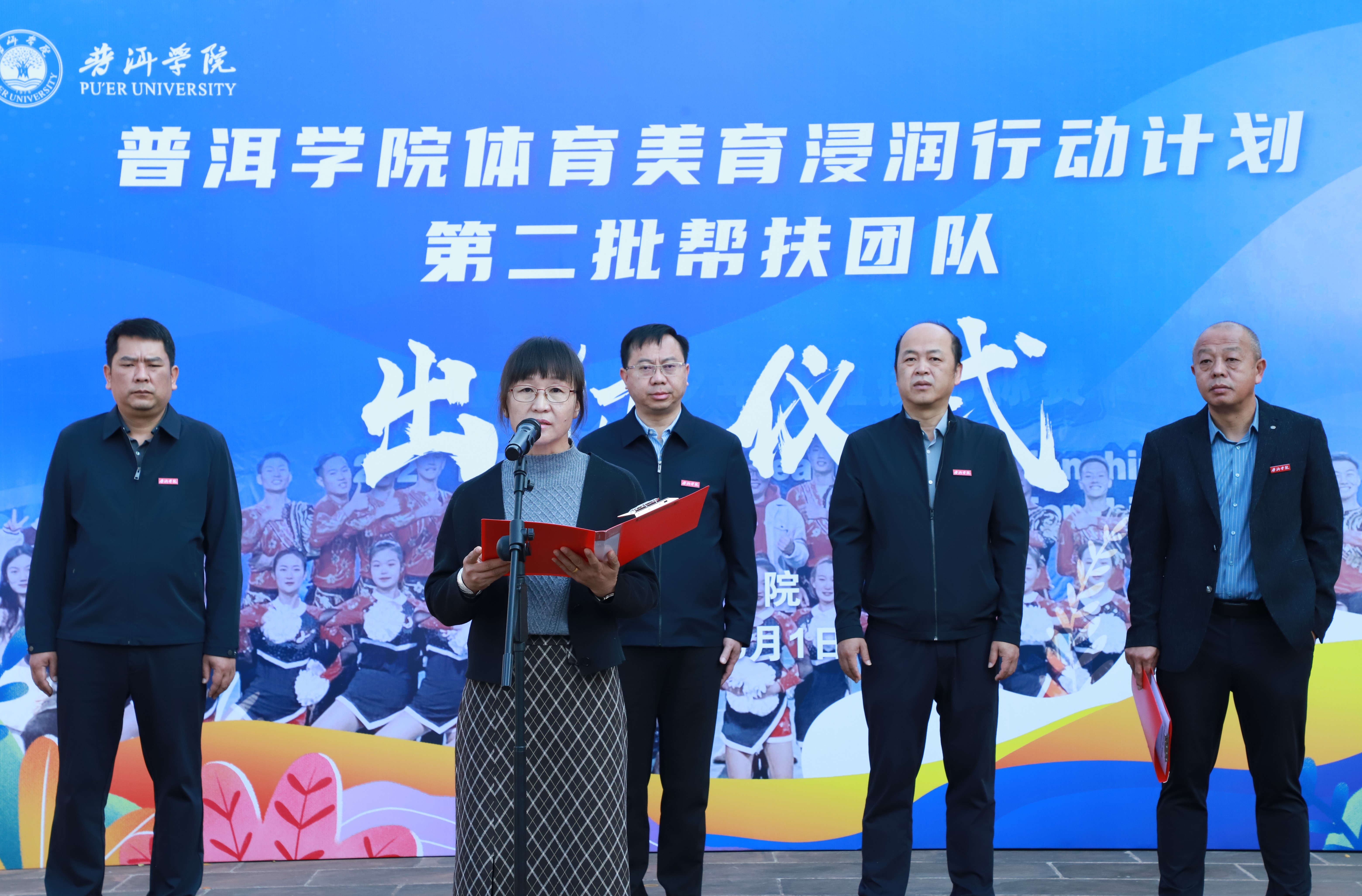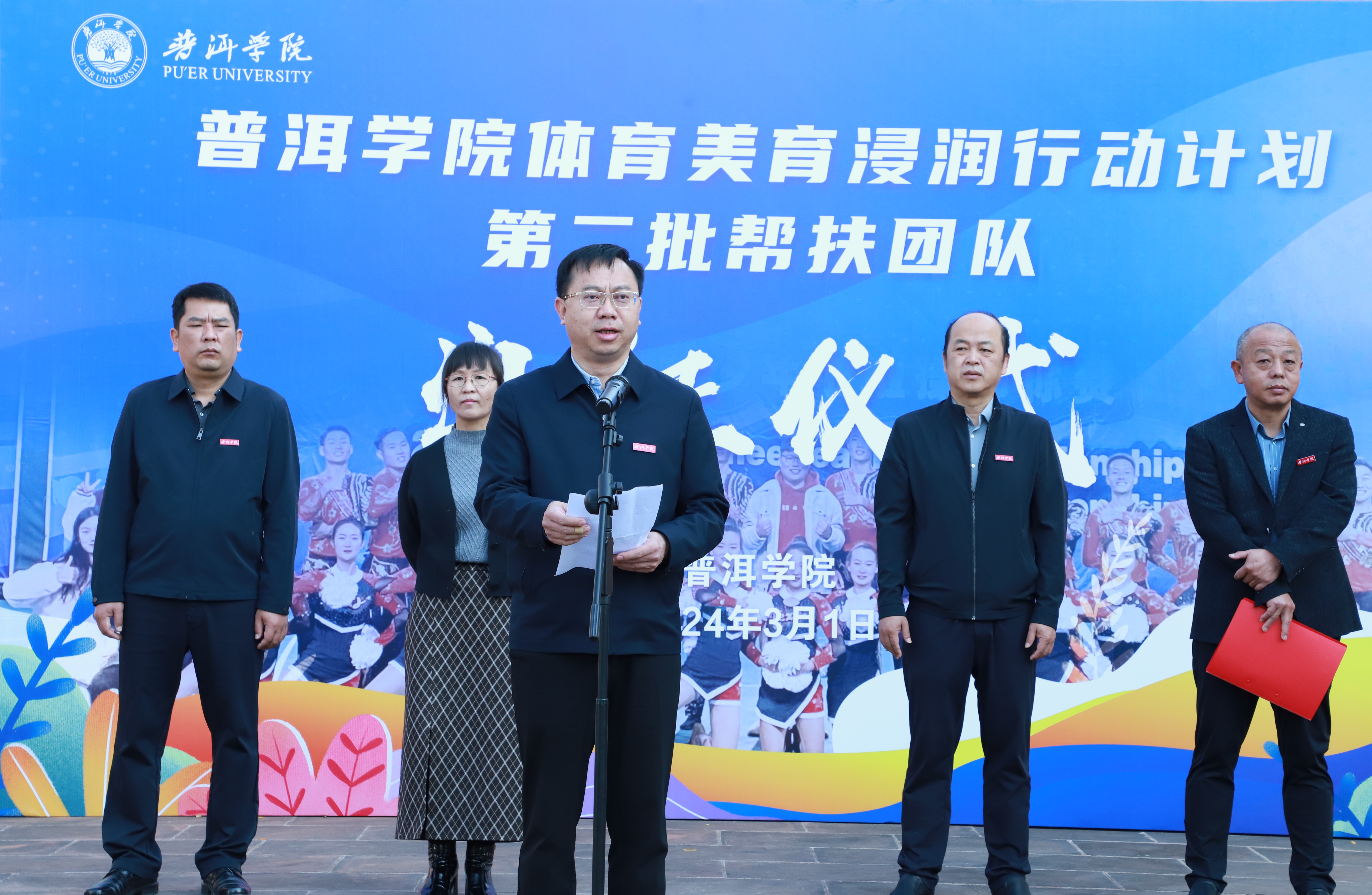 3月1日上午,普洱学院在团结广场举行体育美育浸润行动计划第二批帮扶团队出征仪式暨动员会,派驻106名师生到江城、孟连县开展相关工作。普洱学院党委书记胡国云,党委副书记李险峰,副院长陈勇,党委委员、宣传部部长周顺东;普洱市教育体育局副局长李卓娟出席仪式。李险峰主持仪式。